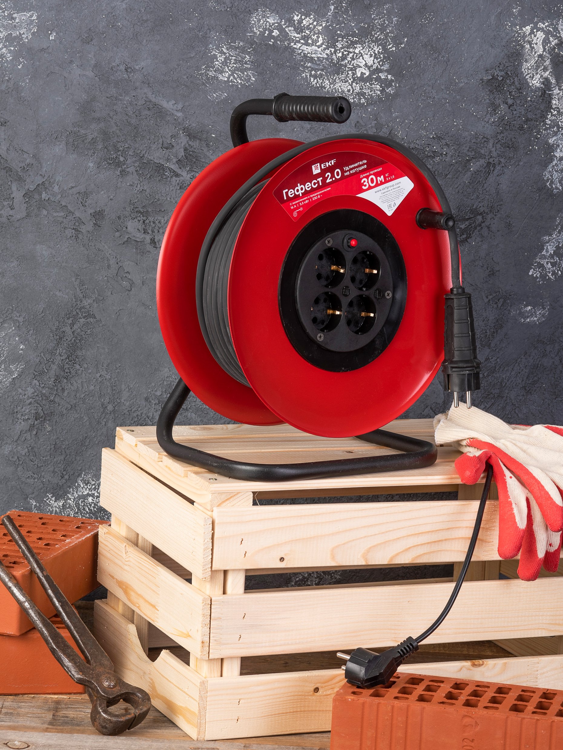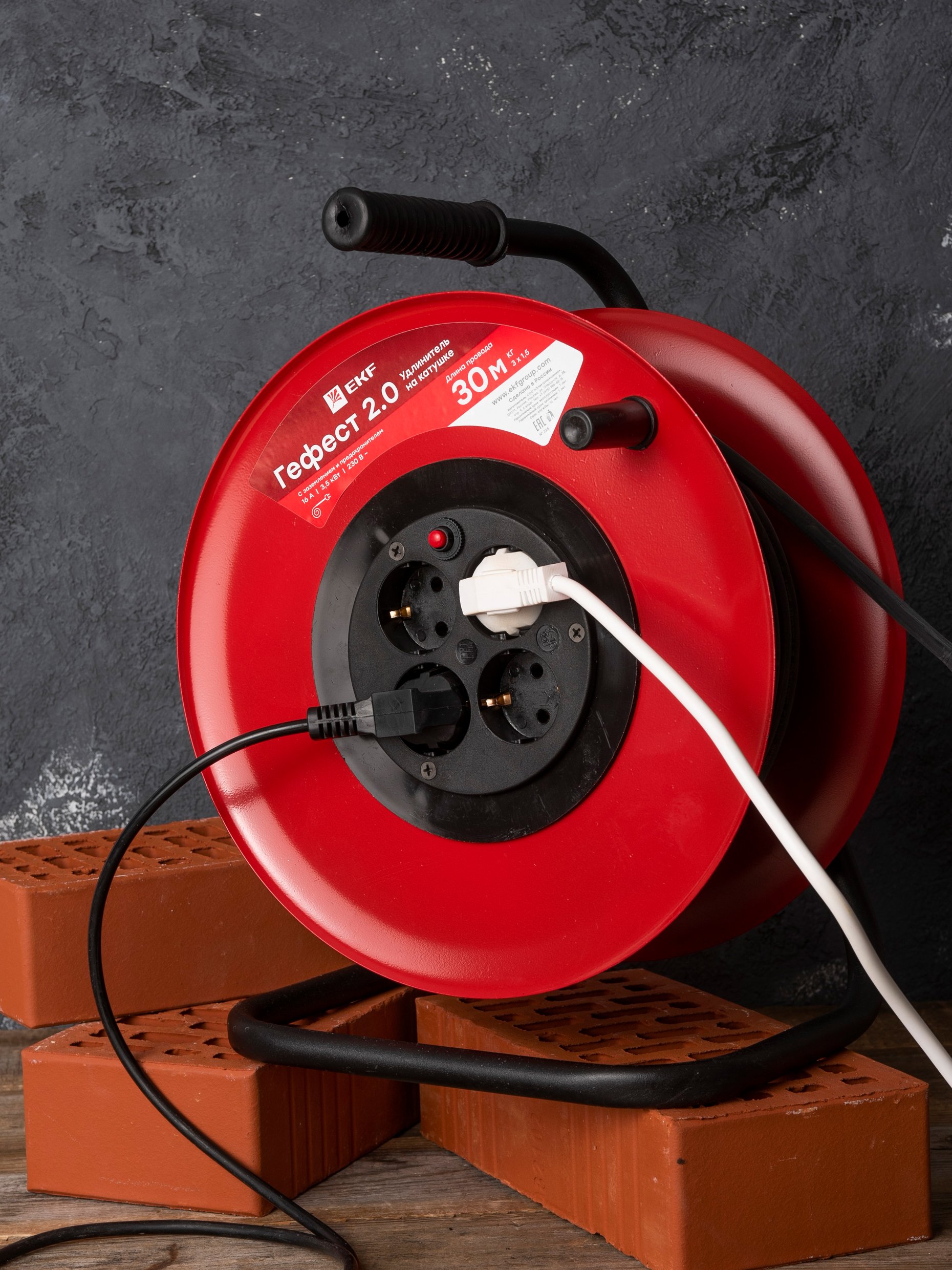 Серия на металлической катушке может использоваться на строительных площадках, для подключения энергоемких потребителей в гаражах и на приусадебных участках, в том числе сварочной аппаратуры, перфораторов,электропил. Надежный кабель КГ в резиновой изоляции выдержит как механические нагрузки, так и суммарную мощность подключенных потребителей до 3,5 кВт.