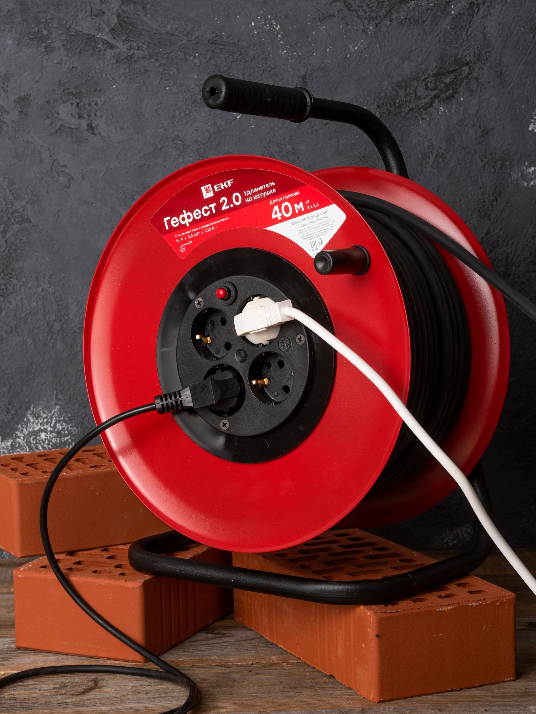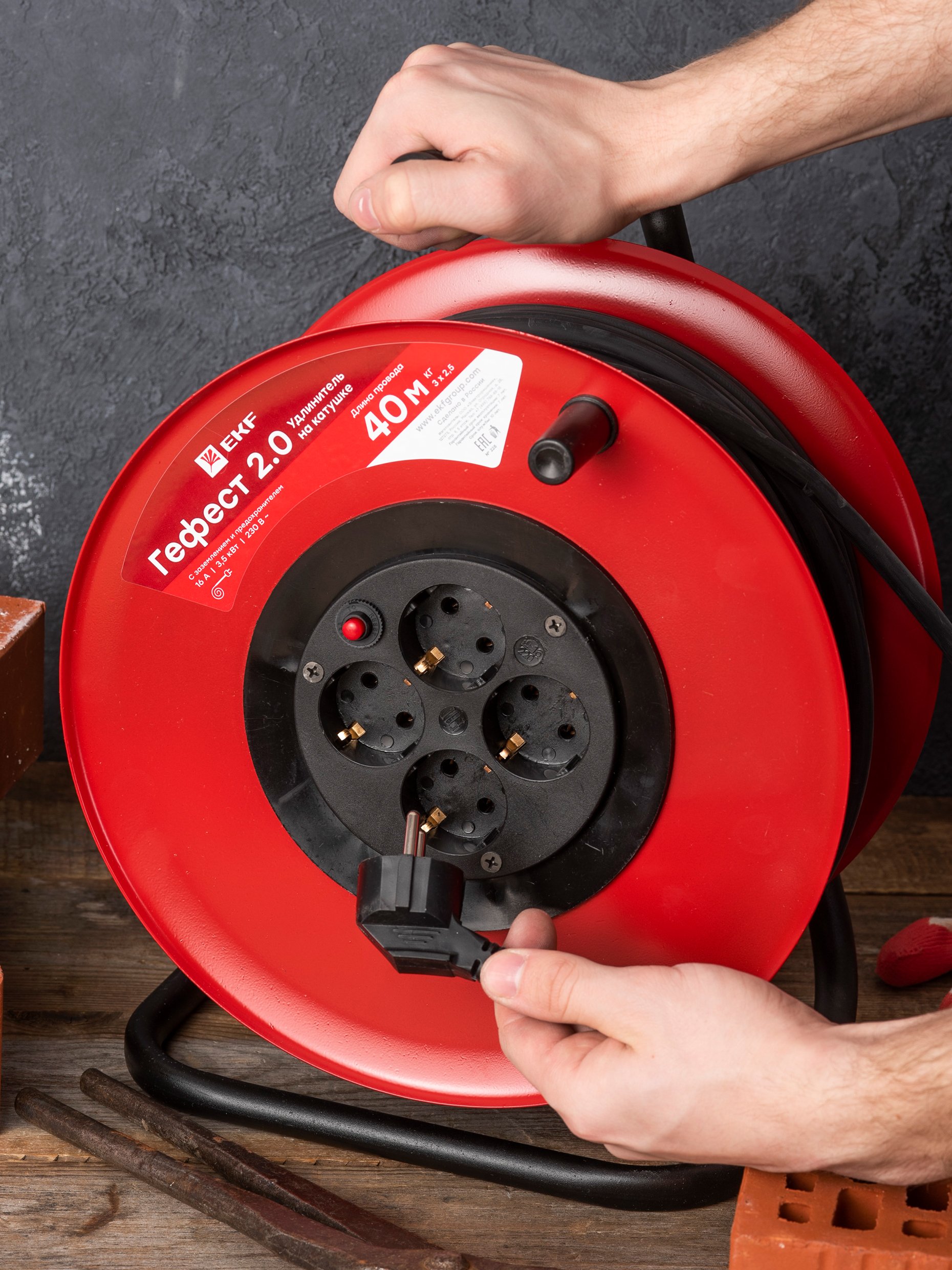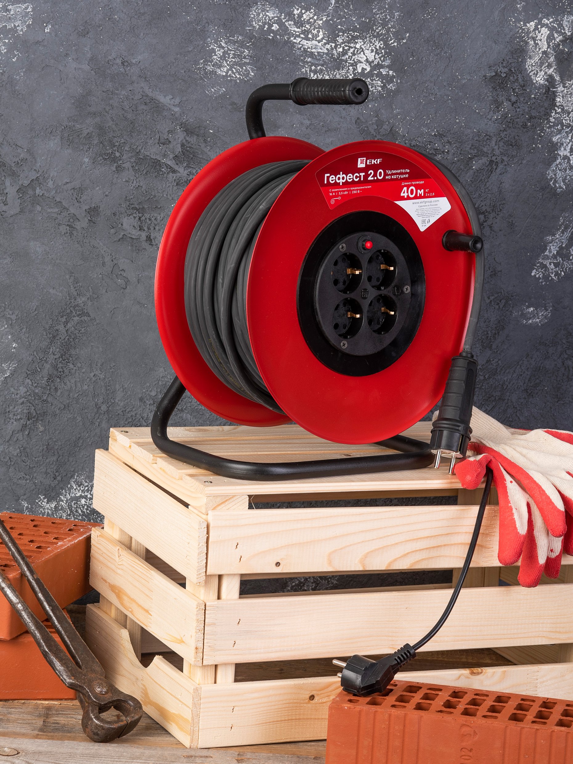 EKF PROxima Удлинитель на катушке "Гефест 2.0" 4 гнезда 40м с заземлением и предохранителем КГ 3*2,5 16А/3,5кВт