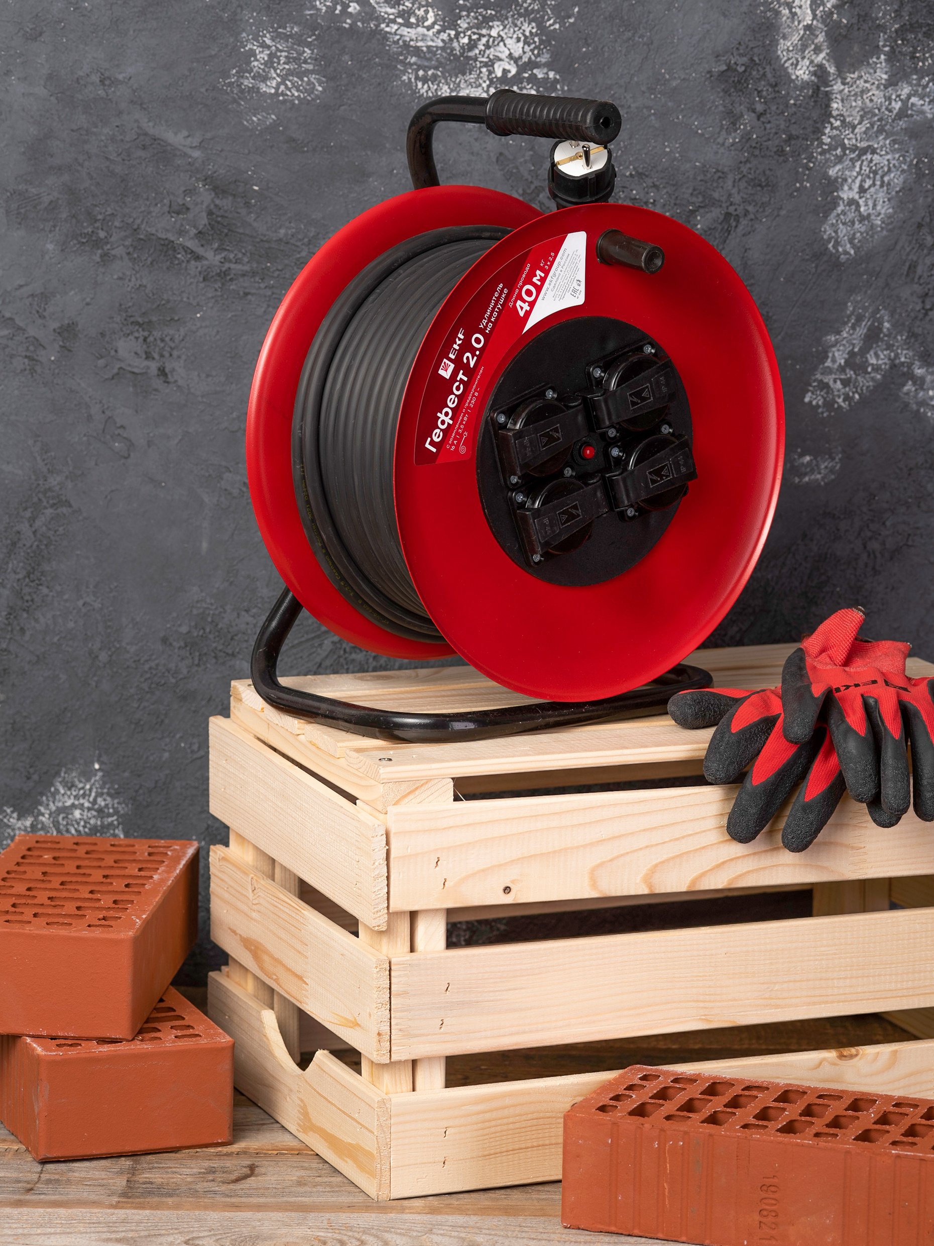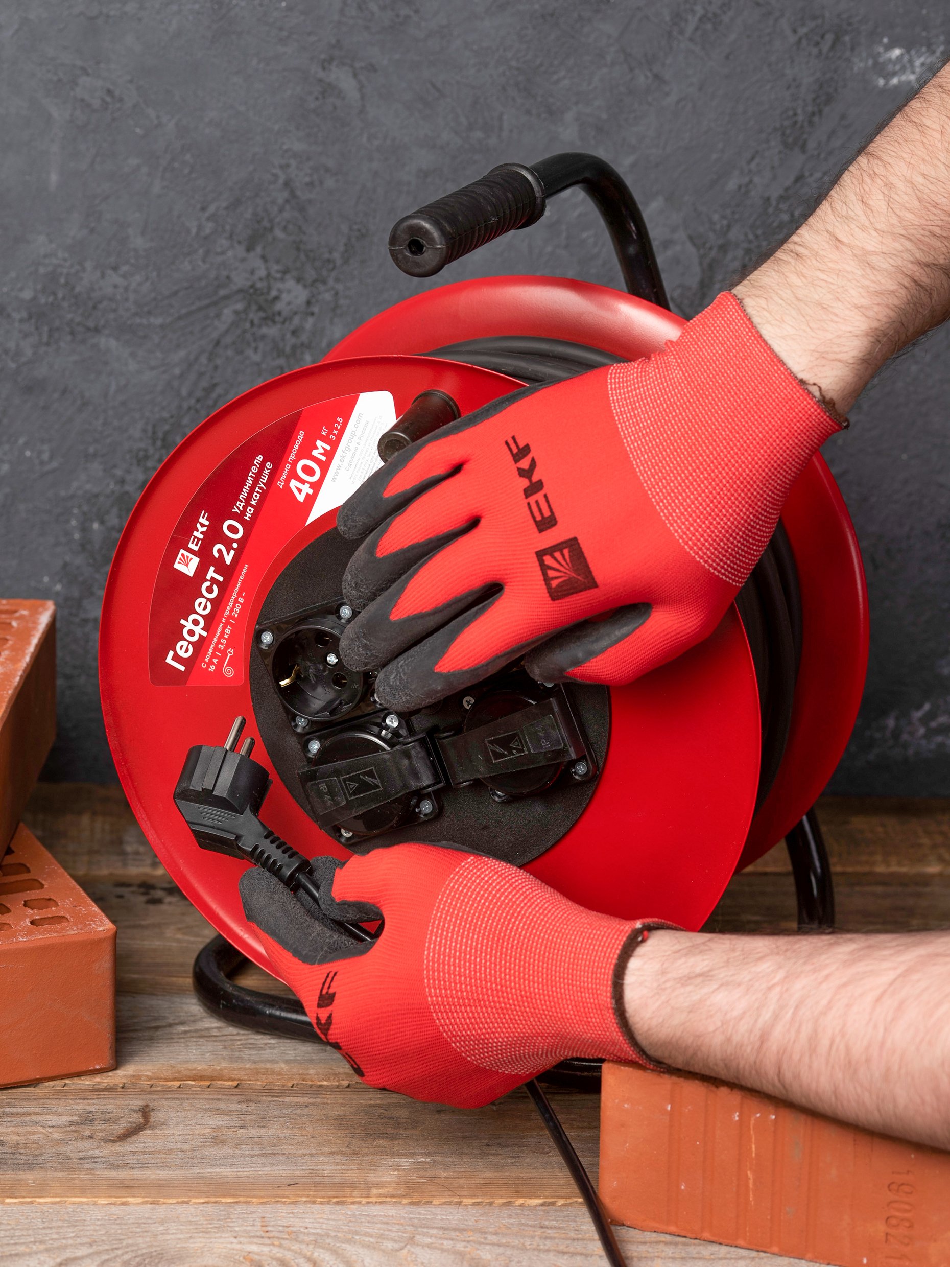 Серия на металлической катушке может использоваться на строительных площадках, для подключения энергоемких потребителей в гаражах и на приусадебных участках, в том числе сварочной аппаратуры, перфораторов,электропил. Надежный кабель КГ в резиновой изоляции выдержит как механические нагрузки, так и суммарную мощность подключенных потребителей до 3,5 кВт.