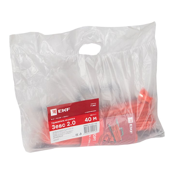 —EKF PROxima Удлинитель на рамке "Зевс 2.0" 40м с заземлением ПВС 3*1,0 16А/3,5кВт, арт USRB02-16-310-1-40