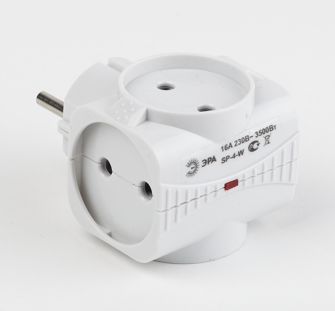 Разветвитель электрический Эра SP-4-W без заземления, 4 розетки, белый. Если в Вашем доме недостаточно розеток, чтобы одновременно подключить несколько электроприборов, то тройник марки Эра станет Вашим надежным помощником. Электрический разветвитель расчитан на максимальную мощность 16А/3500Вт. Корпус выполнен из ударопрочного и негорючего пластика (поликарбонат). Модель тройника на 16А позволяет подключить мощные бытовые приборы общей нагрузкой до 3500Вт. Не бойтесь включить чайник, обогреватель или микроволновку. Дизайн разработан в России командой Эра Style.