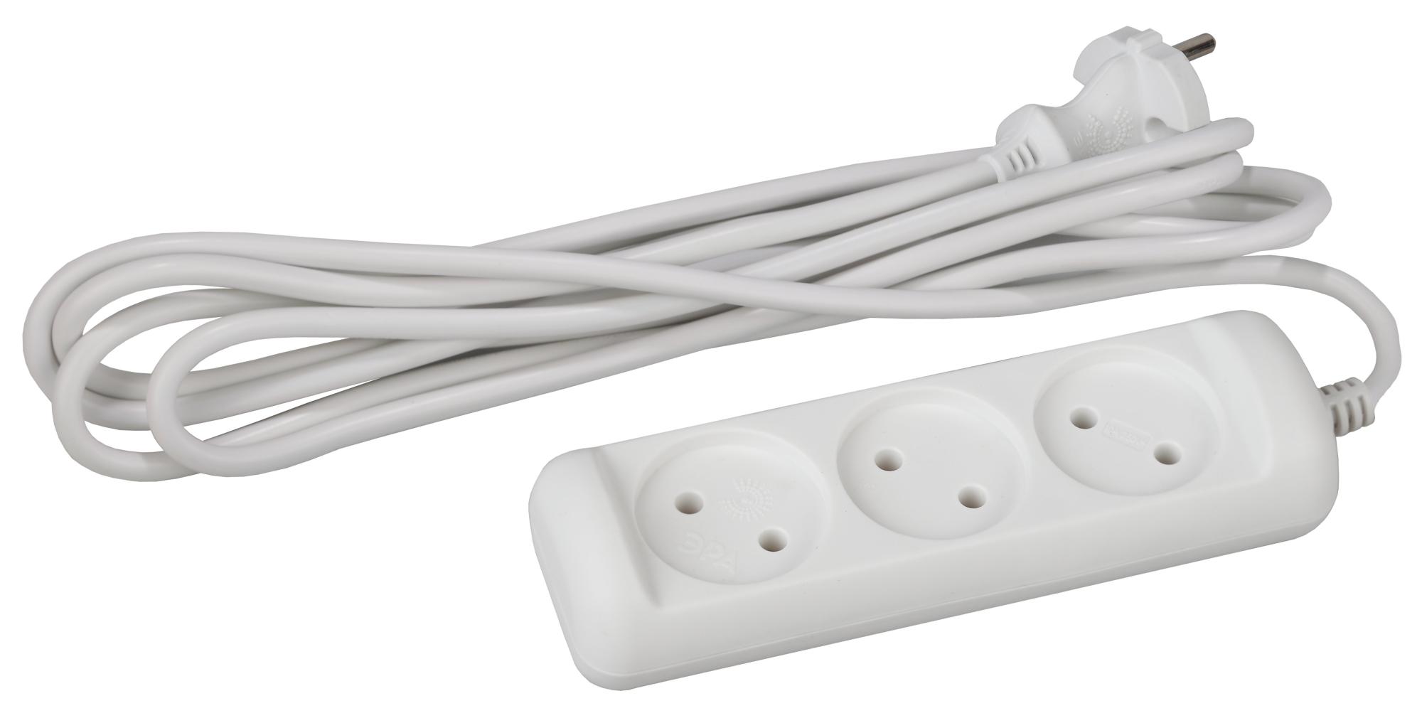 Удлинитель ЭРА серии U без заземления; провод 2x0.75мм2, 100% медь, корпус - полипропилен с антипиренами (негорючий), контактные группы - латунь, максимальная нагрузка - 10A/2200Вт