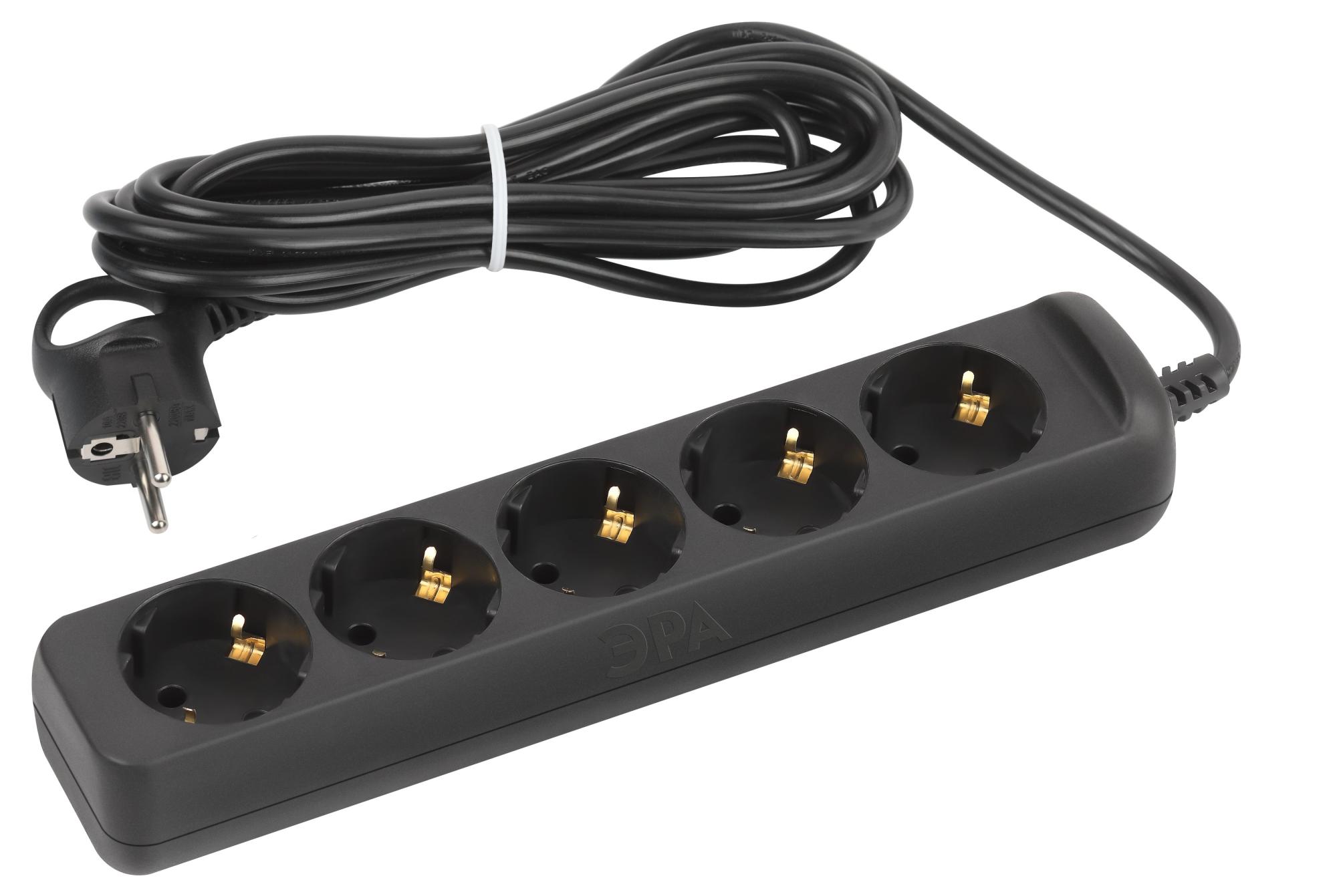 Удлинитель электрический Эра UX-5e-5m-B с заземлением, черный, 5 розеток. Провод ПВС, 3x0,75мм2, 5 м. Рассчитан на максимальную мощность 10А/2200 Вт. Удлинитель Эра станет Вашим надежным помощником, если Ваши любимые электроприборы находятся далеко от розеток. Провод в удлинителях Эра сделан из 100% меди, что делает его абсолютно пожаробезопасным. Корпус выполнен из ударопрочного и негорючего пластика (полипропилен). Вилка обеспечена кольцом для удобного извлечения ее из розетки. Модель удлинителя на 10А позволяет подключить бытовые приборы общей нагрузкой до 2200Вт. Дизайн удлинителя разработан в России командой Эра Style.