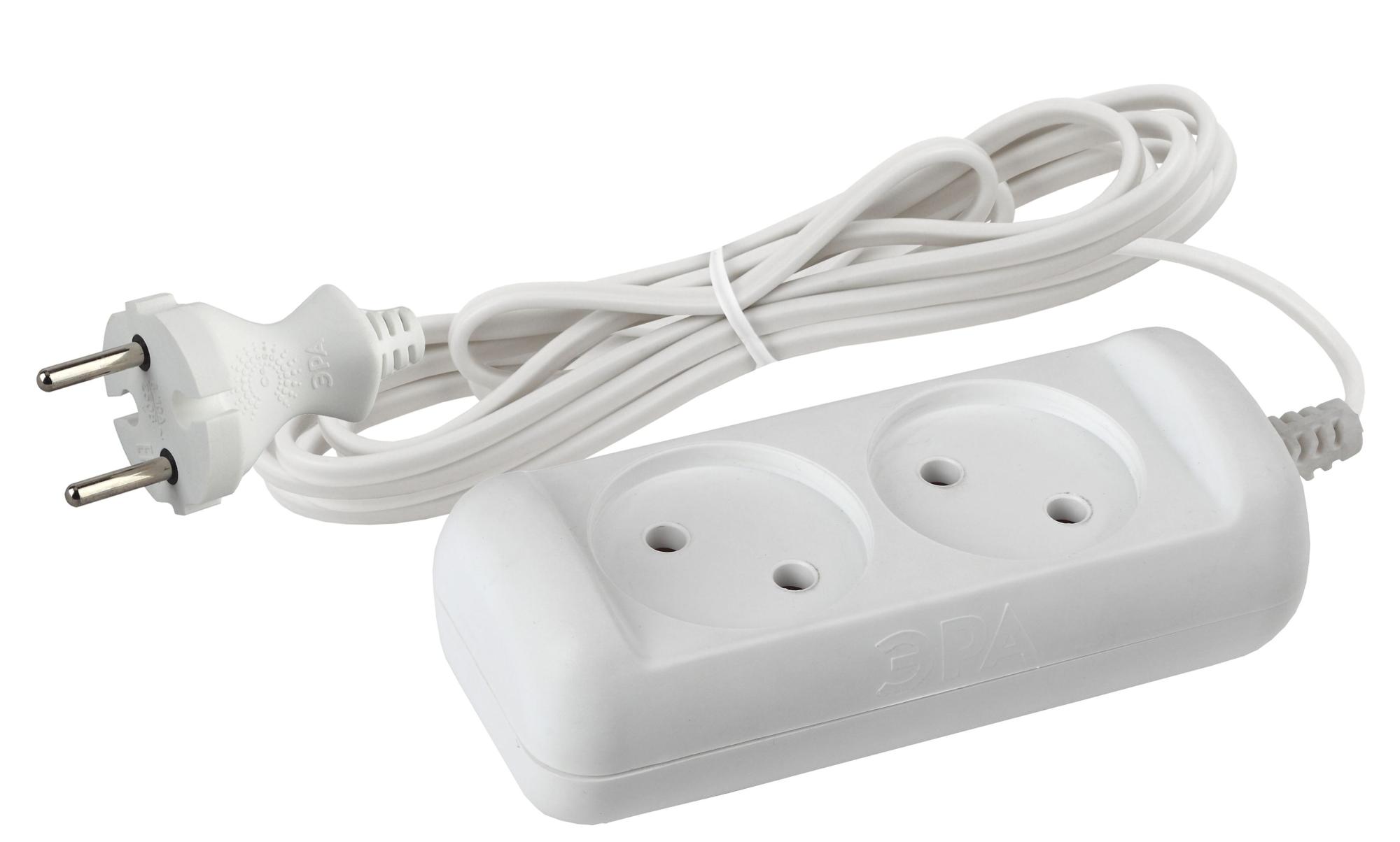 Компактный бытовой удлинитель ЭРА UX-2-3m на 2 розетки, без заземления. Рассчитан на одновременное подключение к розетке до двух маломощных электроприборов, максимальная нагрузка - 6 A/ 1300 Вт. Самая популярная длина шнура 3 метра. Надёжный двухжильный провод ШВВП. Корпус изготовлен из прочного негорючего полипропилена с защищающими от возгорания антипиренами. Закруглённые углы, брендирование на вилке и корпусе, базовый белый цвет этот удлинитель отличается аккуратным приятным дизайном.
