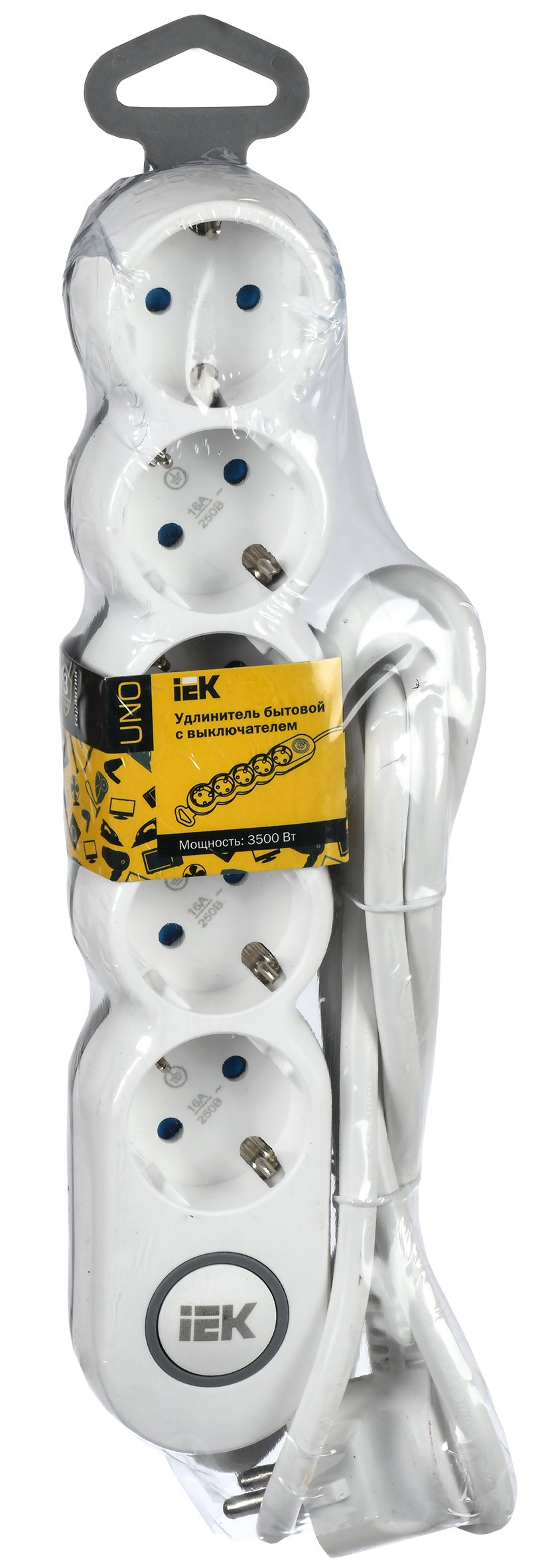 IEK UNO Удлинитель У05В 5 мест 2P+PE/3м 3х1,5мм2 16А/250В UNO, арт WYP53-16-05-03-ZK