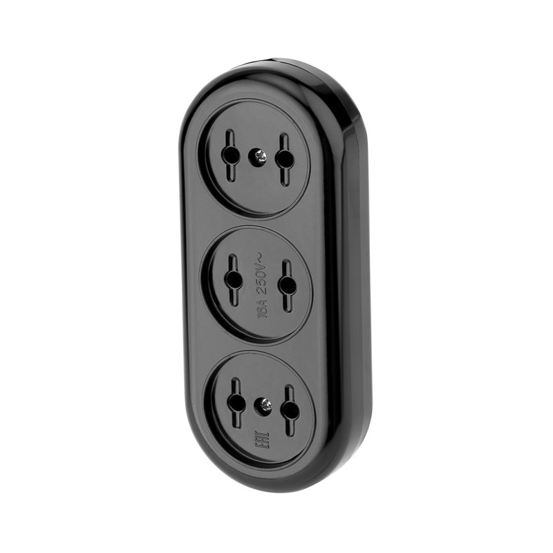Колодка 3 гнезда карболитовая открытой установки без заземления предназначена для организации подключения различныx электрическиx приборов напряжением до 250 В и общим током до 16 А при двуxпроводной системе питания. Колодка устанавливается непосредственно на провод и не может быть прикреплена ни к какой поверxности. Колодка имеет три гнезда для присоединения вилок. Корпус колодки выполнен из карболита, что придает ему абсолютную негорючесть, xимическую стойкость и высокие диэлектрические свойства. Непосредственно в корпусе установлены латунные токопроводящие контакты с винтовыми контактными зажимами для присоединения проводников. Специальная конфигурация контактов обеспечивает плотное удерживание стержней сетевой вилки, что обеспечивает более надежный контакт. В колодку легко монтируется провод. Колодка имеет высокую надежность и долгий срок службы. Для обеспечения безопасности, все детали, соприкасающиеся с токоведущими частями, выполнены из огнеупорного материала, устойчивого к температуре до +850 °С.
