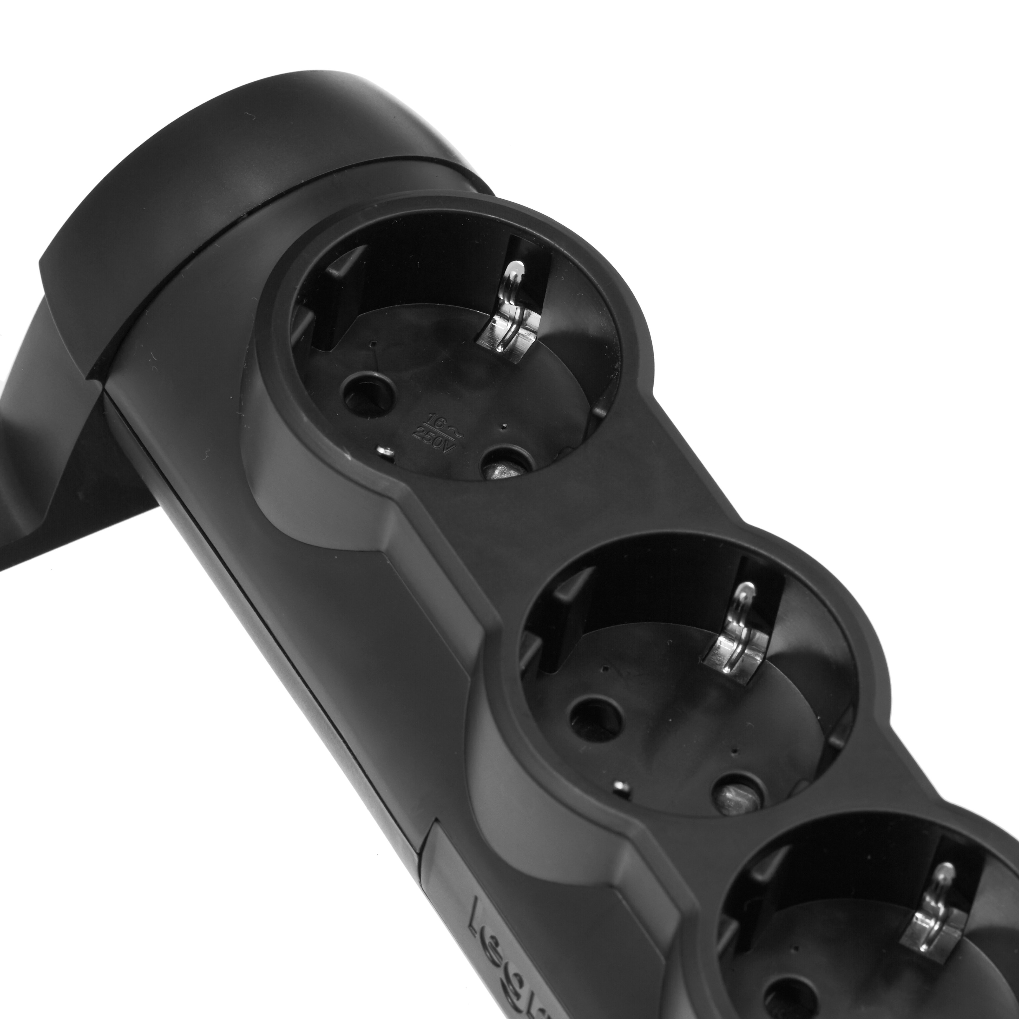 Legrand Комфорт Черный Удлинитель 6x2К+З с выкл., без кабеля, фиксир. поворотный блок, возможно крепление к стене от производителя Legrand. Артикул производителя 694610.