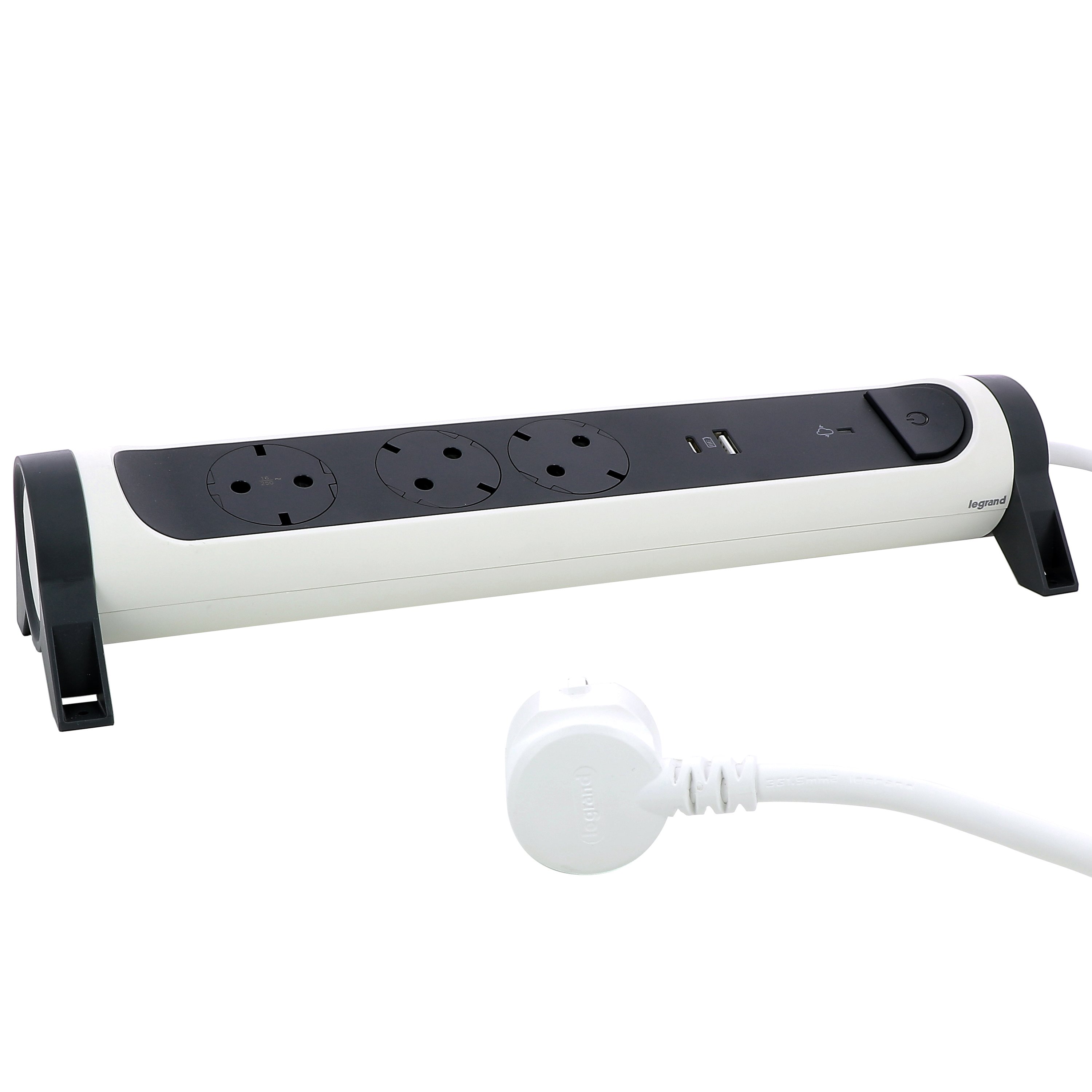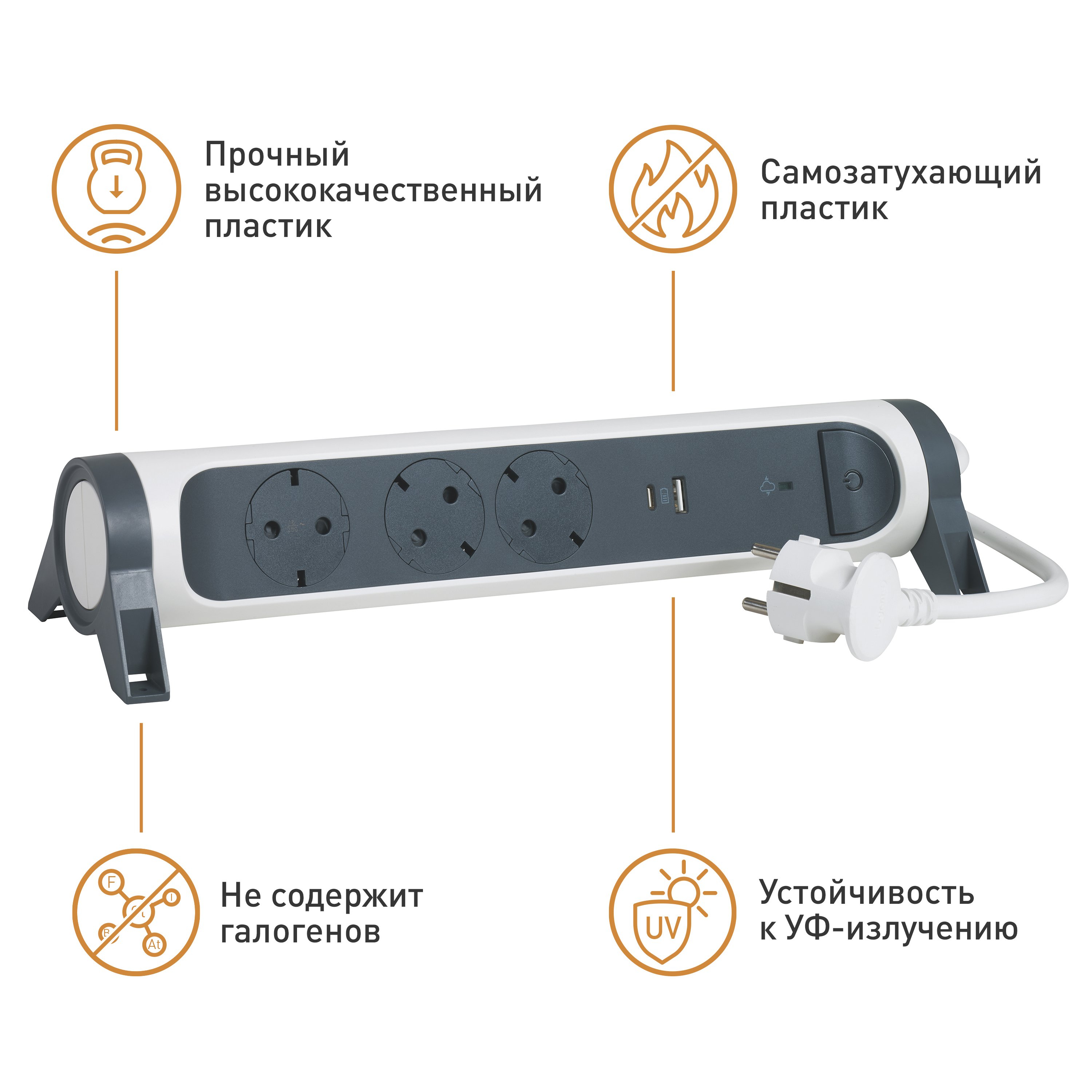 Legrand Revolution Комфорт Бело-черный Удлинитель 3x2К+З с 2xUSB A+C (3А), кабель 1,5м, плоские розетки, УЗИП с индикацией, фиксируемый поворотный бло от производителя Legrand. Артикул производителя 694508.