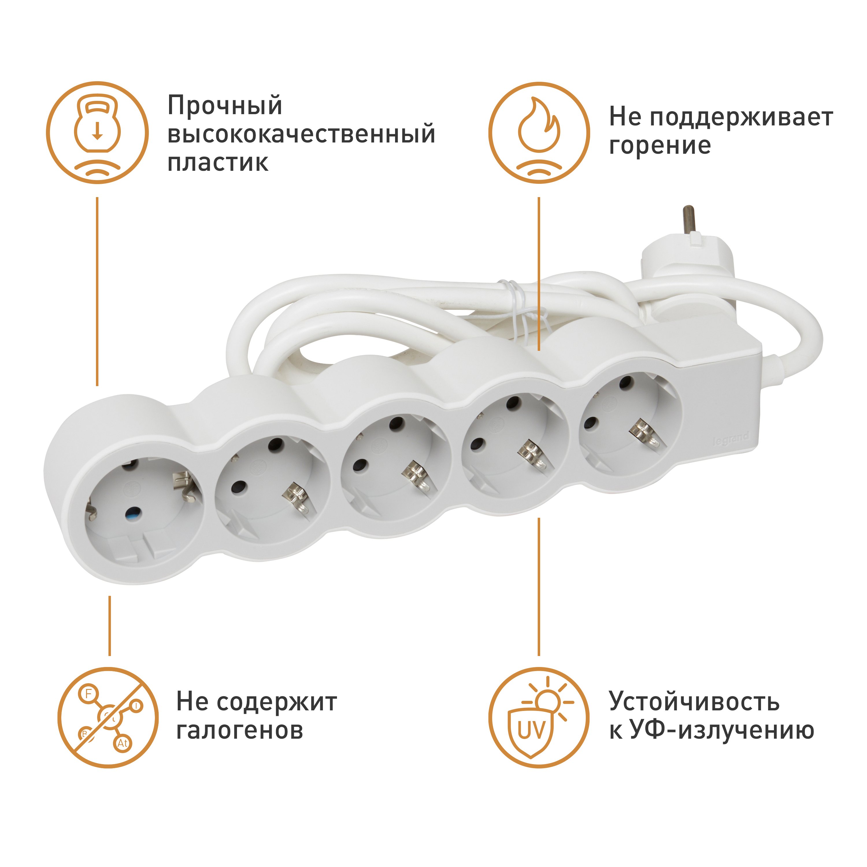 Legrand Revolution Стандарт Бело-серый Удлинитель 5x2К+З, кабель 1,5м от производителя Legrand. Артикул производителя 694555.