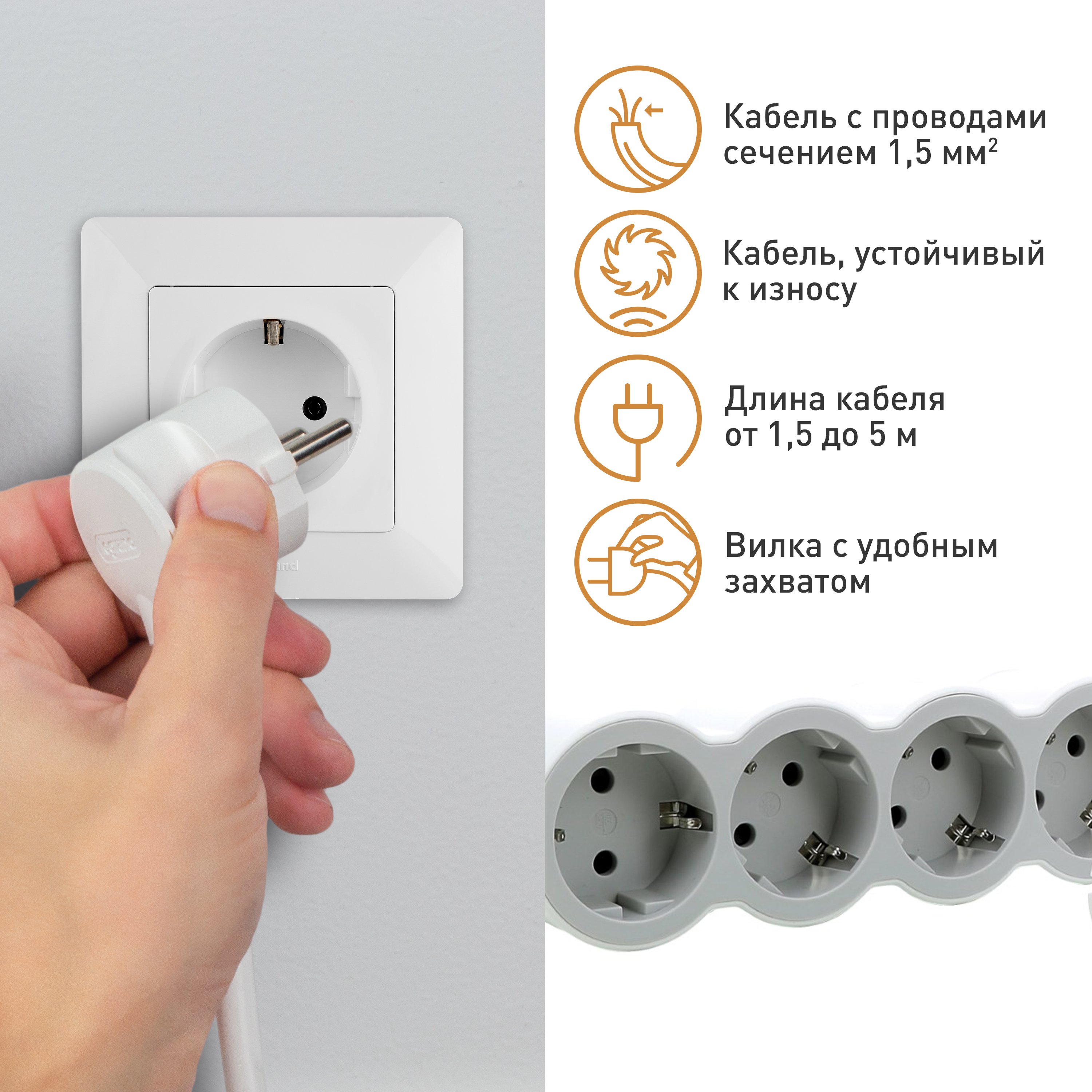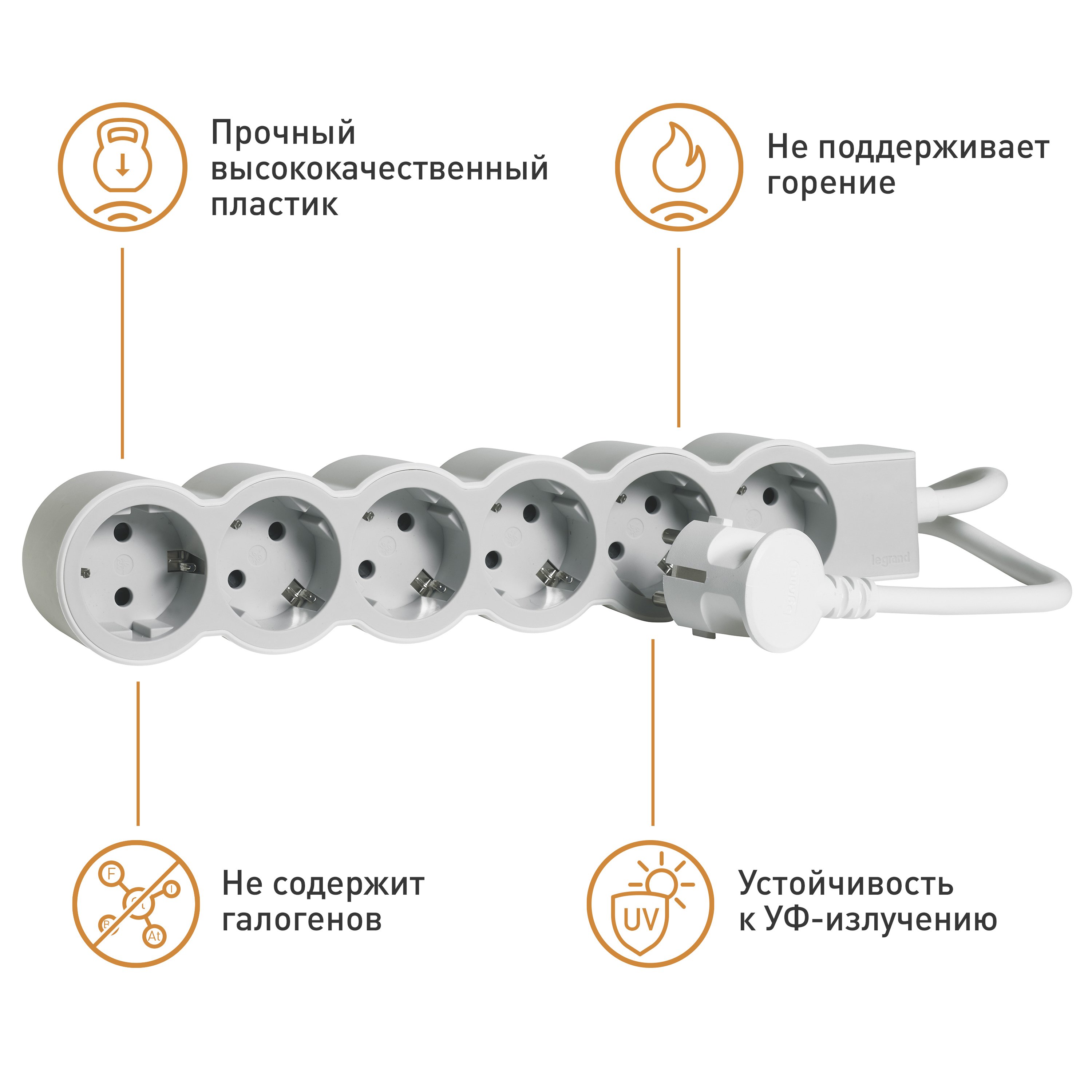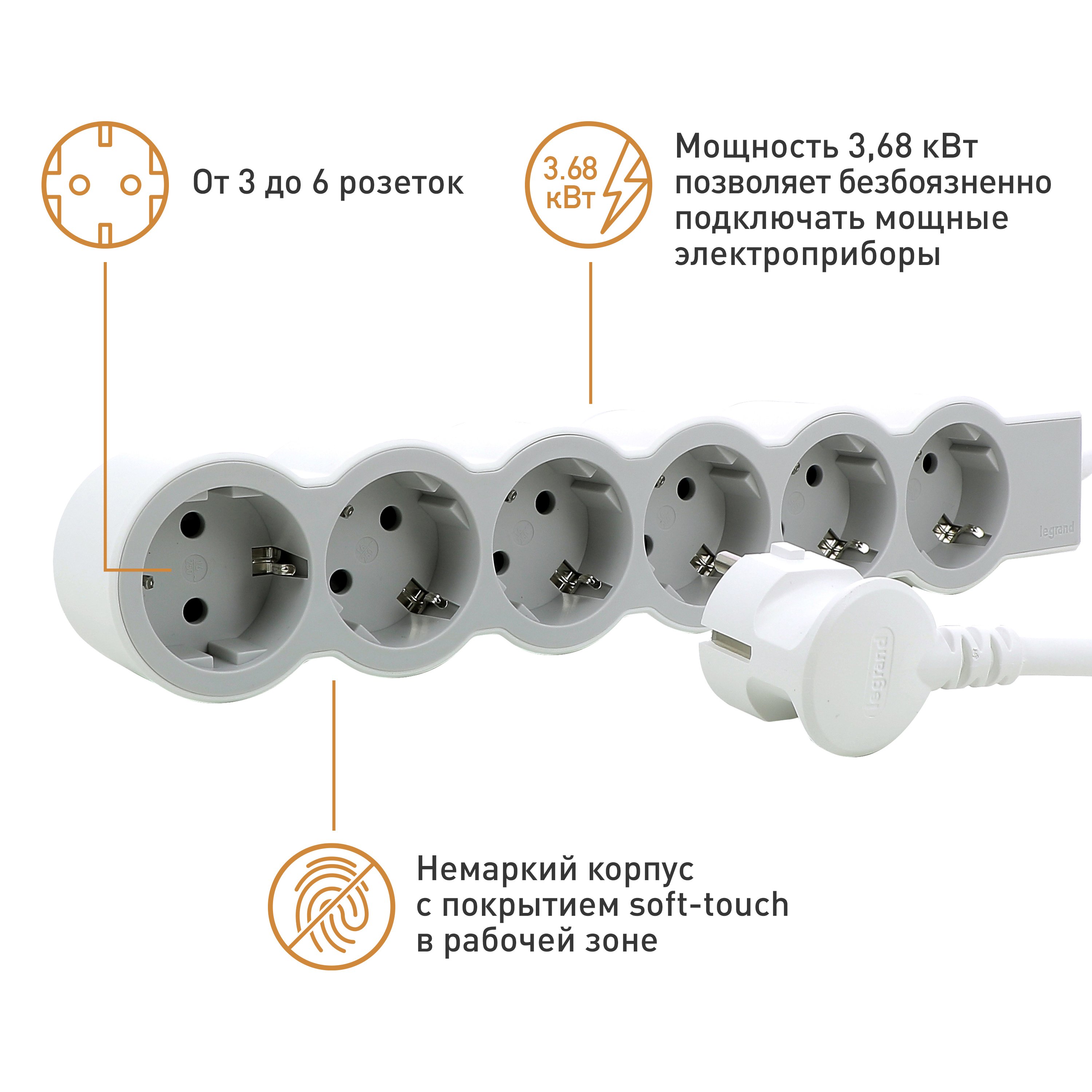 Legrand Revolution Стандарт Бело-серый Удлинитель 6x2К+З, кабель 3м от производителя Legrand. Артикул производителя 694565.