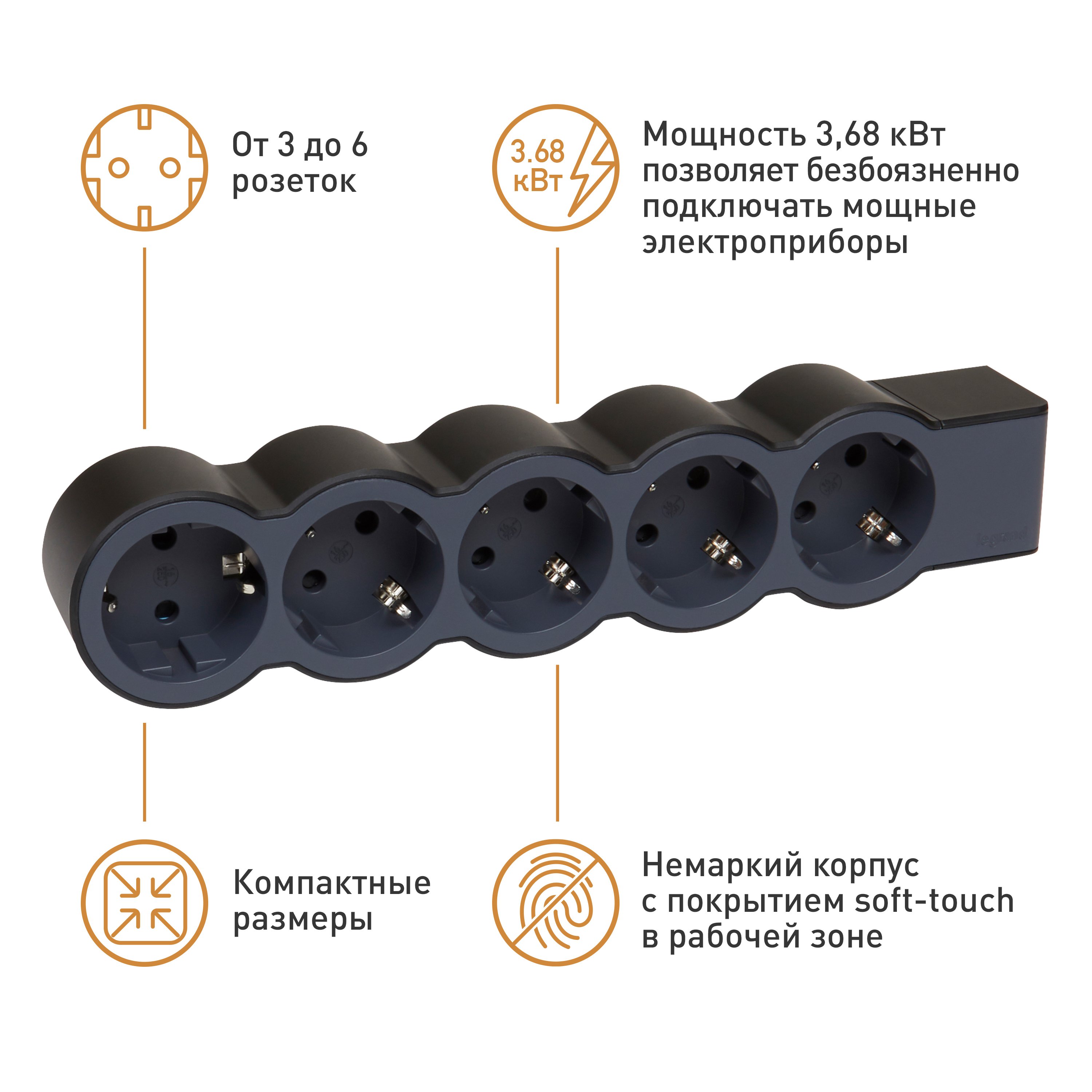 Legrand Revolution Стандарт Черный Удлинитель 5x2К+З, без кабеля от производителя Legrand. Артикул производителя 694578.