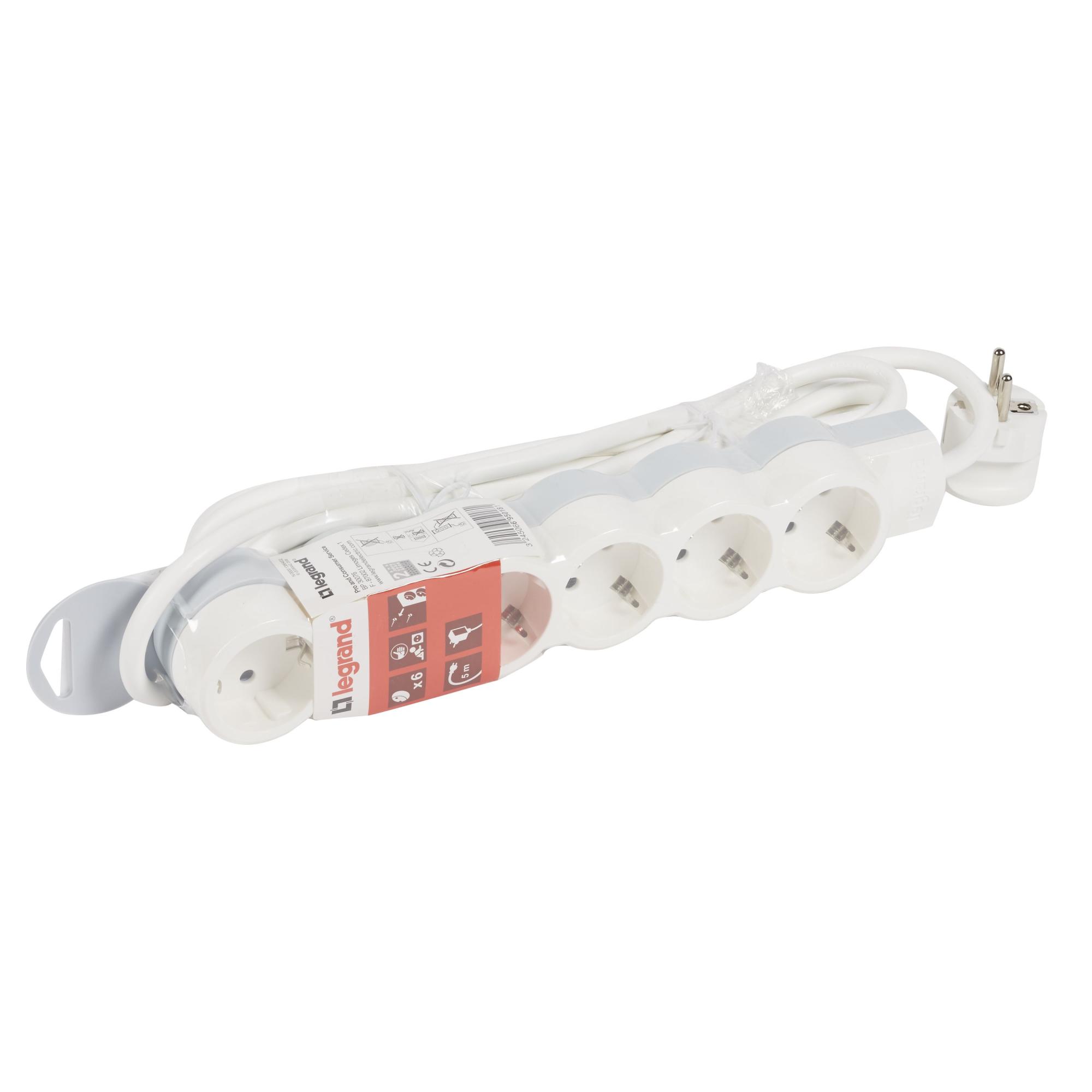 Legrand Стандарт Бело-серыйУдлинитель 6x2К+З,кабель 5м, возможно крепление к стене от производителя Legrand. Артикул производителя 695018.
