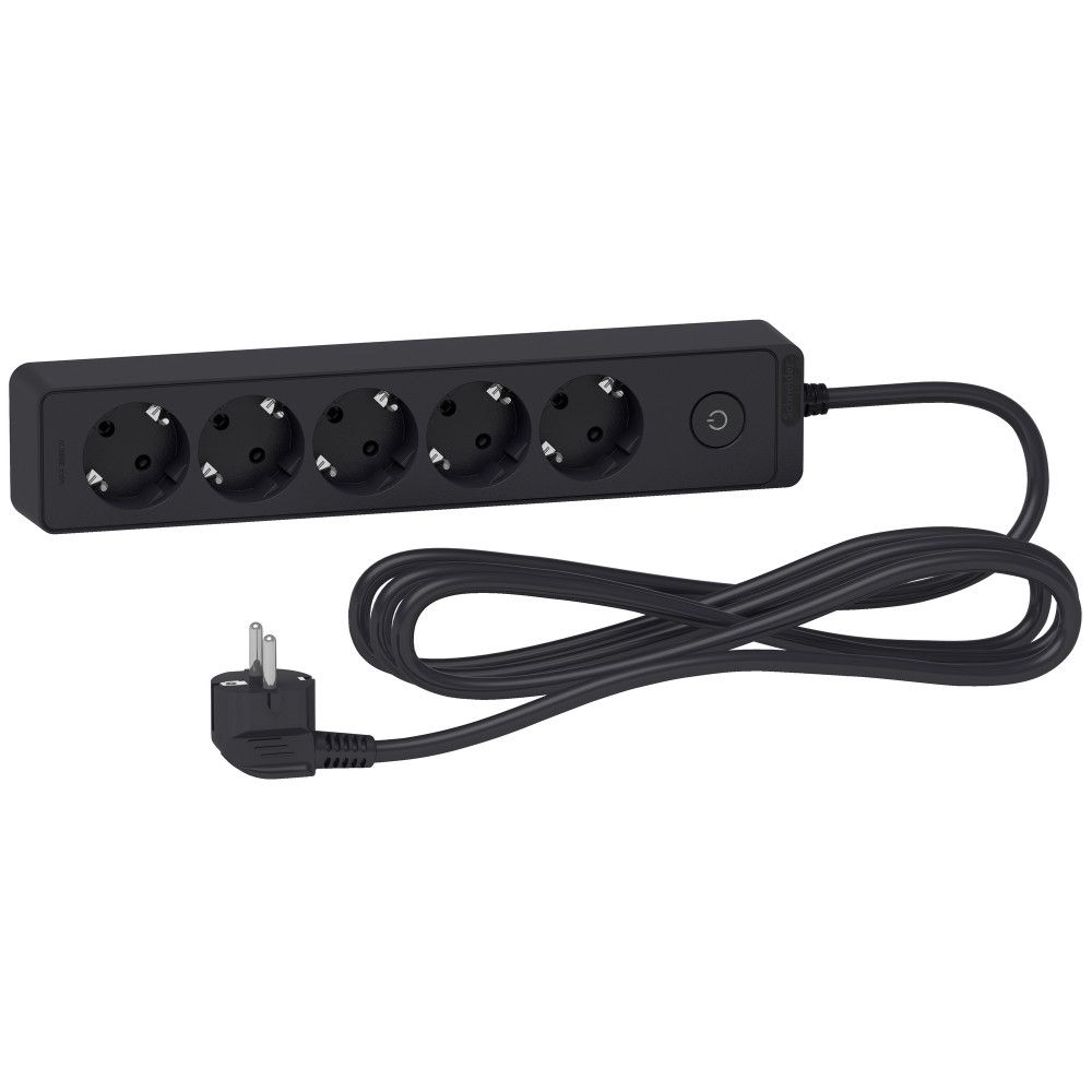 UNICA EXTEND удлинитель 5 розеток 2К+З, кабель 3м, ЧЁРНЫЙ