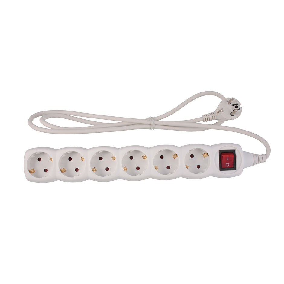 Simon Brico Белый Удлинитель на 6 розеток Schuko, выключатель, кабель 1.5м
