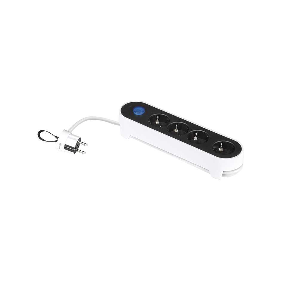 —Simon Brico Черно-белый Удлинитель на 4 розетки Schuko, выключатель, кабель 1.4м, арт BM712401