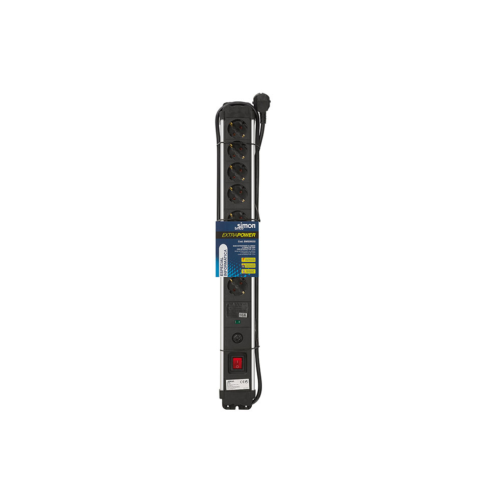 —Simon Brico Черный Сетевой фильтр на 8 розеток Schuko, а/выключатель, кабель 1.5м, арт BM539232