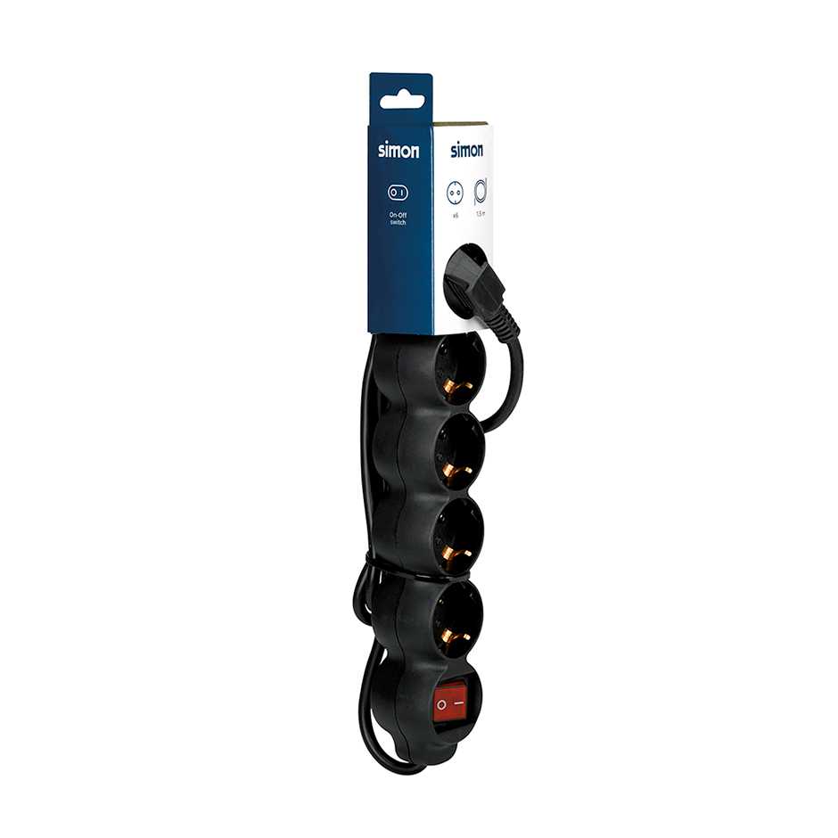 —Simon Brico Черный Удлинитель на 6 розеток Schuko, выключатель, кабель 1.5м, арт BM165417