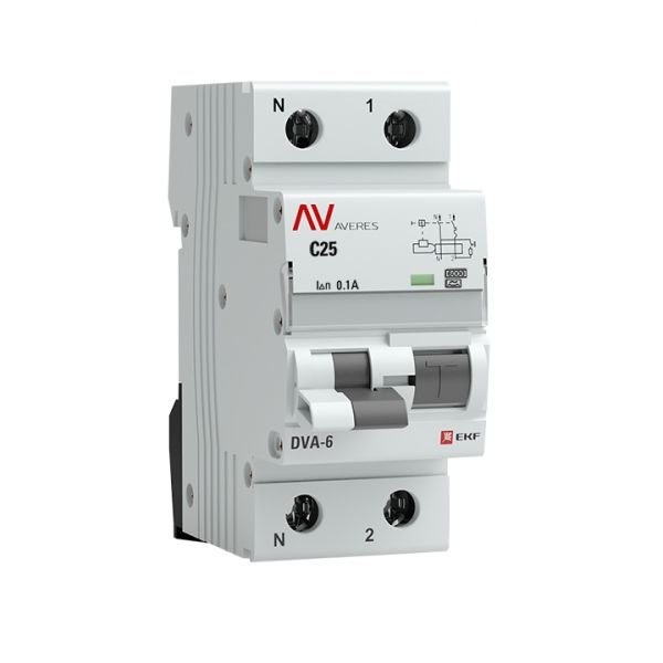 —EKF Averes DVA-6 Диф. Автомат (C) 1P+N 25А/100мА тип А 6кА, арт rcbo6-1pn-25C-100-a-av