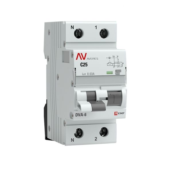 —EKF Averes DVA-6 Диф. Автомат (C) 1P+N 25А/30мА тип А 6кА, арт rcbo6-1pn-25C-30-a-av