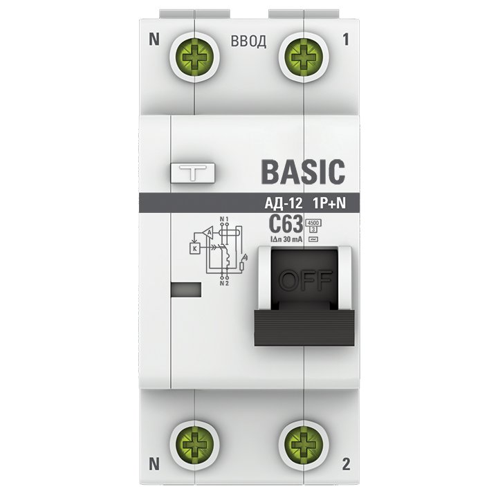 —EKF Basic АД-12 Диф. Автомат (C) 1P+N 63А/30мА тип АС 4,5кА , электронный, арт DA12-63-30-bas