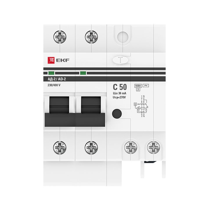 EKF PROxima АД-2 Диф. Автомат (C) 50А /30мА тип АС 6кА , электронный, арт DA2-6-50-30-pro