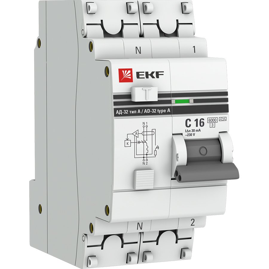 EKF PROxima АД-32 Диф. Автомат (C)  1P+N 16А/30мА тип А 6кА , электронный