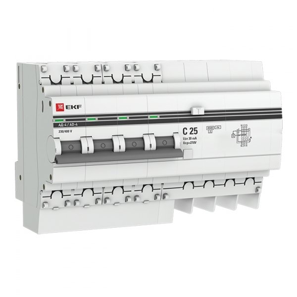 EKF PROxima АД-4 Диф. Автомат (C) 25А/30мА тип АС 4,5кА , электронный, арт DA4-25-30-pro
