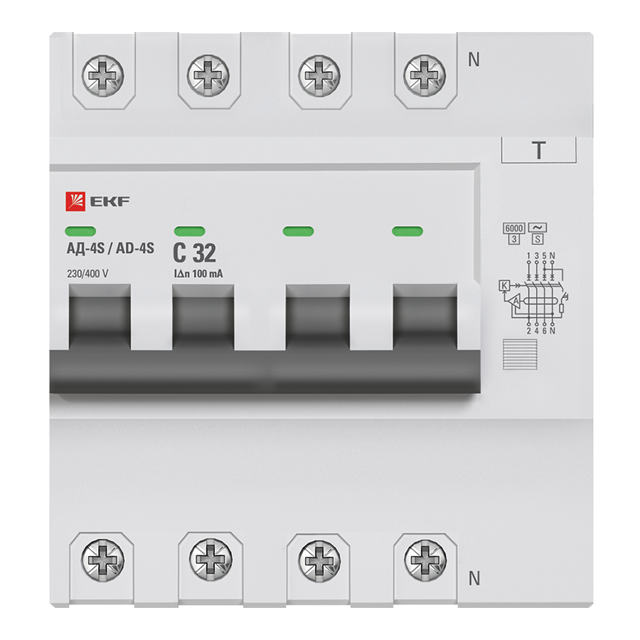 Дифференциальный автоматический выключатель АД-2(4) (S) EKF PROxima представляет собой аппарат, сочетающий функции автоматического выключателя с устройством защитного отключения. При обнаружении автоматическим выключателем в защищаемом участке сети тока утечки (повреждения) на землю или сверхтока (тока перегрузки или короткого замыкания) происходит срабатывание устройства, приводящее к отключению защищаемой сети. Особое отличие дифференциальных автоматов EKF – в наличии встроенного блока защиты от перенапряжения. АД-2 и АД-4 EKF PROxima выпускаются в стандартном и селективном (АД-2S, АД-4S) исполнениях.
