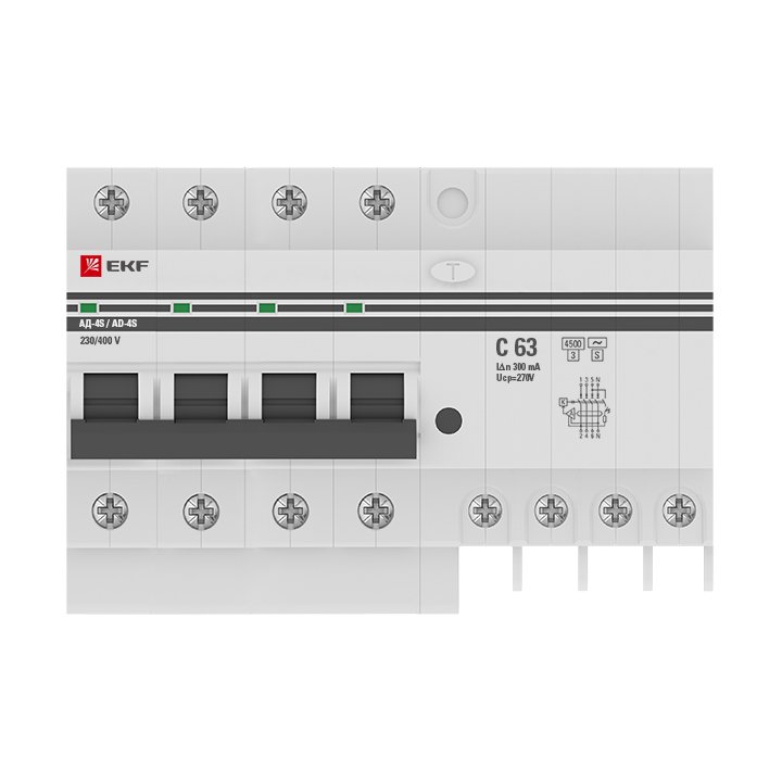 EKF PROxima АД-4 Диф. Автомат (C)   63А/300мА тип АС 4,5кА , электронный, селективный