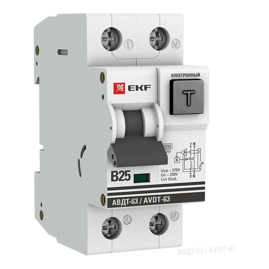 Автоматический выключатель дифференциального тока АВДТ-63 EKF PROxima представляет аппарат, сочетающий функции автоматического выключателя с электромеханическим или электронным УЗО. При обнаружении автоматическим выключателем в защищаемом участке сети тока утечки (повреждения) на землю или сверхтока (тока перегрузки иликороткого замыкания) происходит срабатывание устройства, приводящее к отключению защищаемой сети. Возможна коммутация алюминиевым и медным проводником.Автоматический выключатель дифференциального тока малогабаритный АВДТ-63М EKF PROxima представляет аппарат, сочетающий функции автоматического выключателя с электронным УЗО типа АС в компактном корпусе шириной один модуль. При обнаружении автоматическим выключателем на защищаемом участке сети тока утечки (повреждения) на землю или сверхтока (тока перегрузки или короткого замыкания) происходит срабатывание устройства, приводящее к отключению защищаемой сети. Особое отличие дифференциальных автоматических выключателей EKF с электронным УЗО – в нали