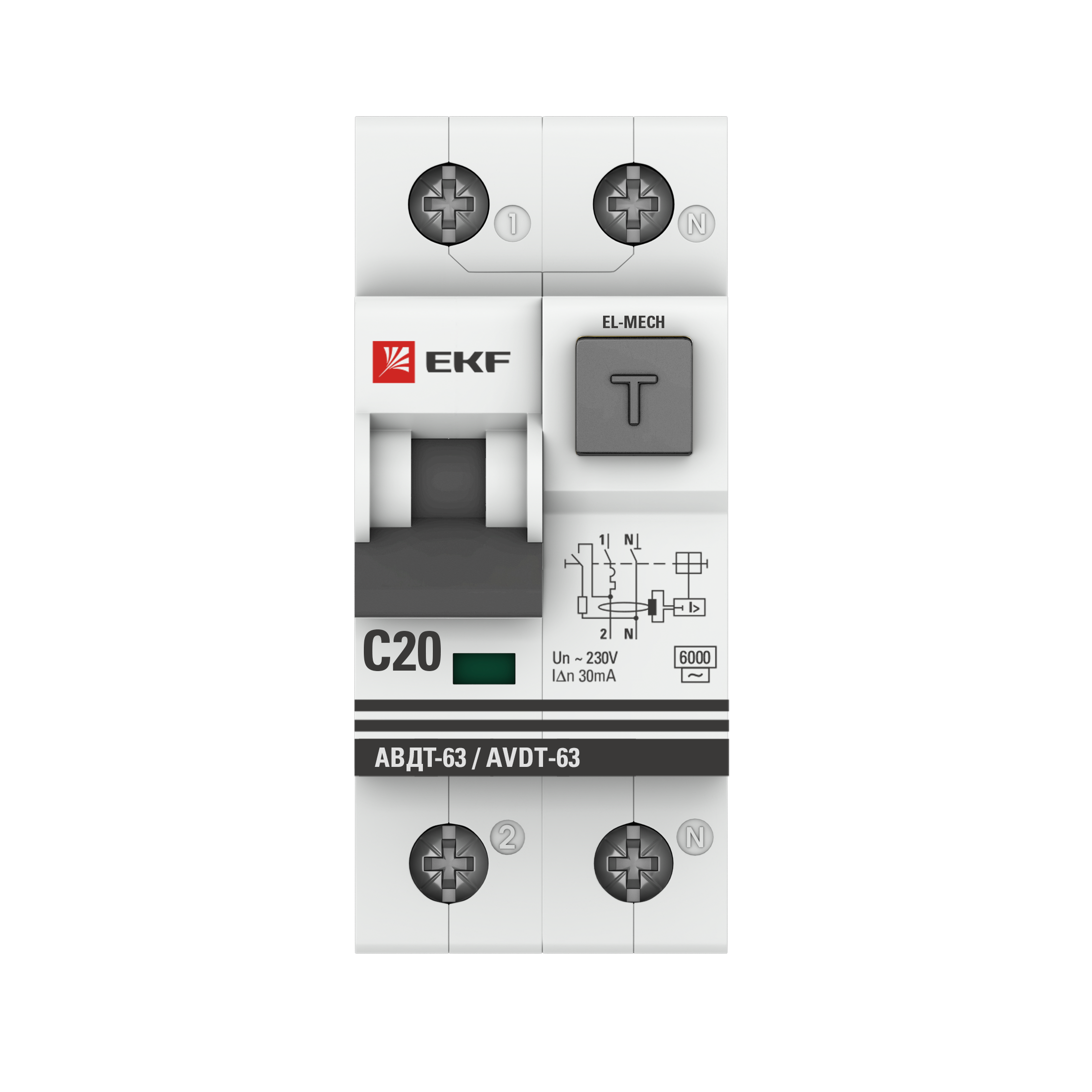 —EKF PROxima АВДТ-63 Диф. Автомат (C) 20А/30мА тип АС 6кА , электромеханический, арт DA63-20-30-AC