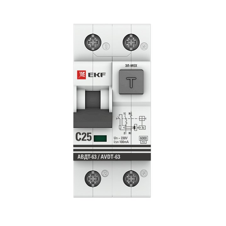 Автоматический выключатель дифференциального тока АВДТ-63 EKF PROxima представляет аппарат, сочетающий функции автоматического выключателя с электромеханическим или электронным УЗО. При обнаружении автоматическим выключателем в защищаемом участке сети тока утечки (повреждения) на землю или сверхтока (тока перегрузки иликороткого замыкания) происходит срабатывание устройства, приводящее к отключению защищаемой сети. Возможна коммутация алюминиевым и медным проводником.Автоматический выключатель дифференциального тока малогабаритный АВДТ-63М EKF PROxima представляет аппарат, сочетающий функции автоматического выключателя с электронным УЗО типа АС в компактном корпусе шириной один модуль. При обнаружении автоматическим выключателем на защищаемом участке сети тока утечки (повреждения) на землю или сверхтока (тока перегрузки или короткого замыкания) происходит срабатывание устройства, приводящее к отключению защищаемой сети. Особое отличие дифференциальных автоматических выключателей EKF с электронным УЗО – в нали