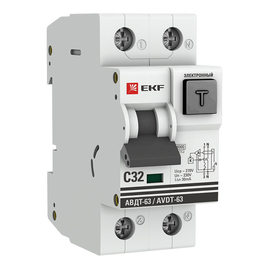 Автоматический выключатель дифференциального тока АВДТ-63 EKF PROxima представляет аппарат, сочетающий функции автоматического выключателя с электромеханическим или электронным УЗО. При обнаружении автоматическим выключателем в защищаемом участке сети тока утечки (повреждения) на землю или сверхтока (тока перегрузки иликороткого замыкания) происходит срабатывание устройства, приводящее к отключению защищаемой сети. Возможна коммутация алюминиевым и медным проводником.Автоматический выключатель дифференциального тока малогабаритный АВДТ-63М EKF PROxima представляет аппарат, сочетающий функции автоматического выключателя с электронным УЗО типа АС в компактном корпусе шириной один модуль. При обнаружении автоматическим выключателем на защищаемом участке сети тока утечки (повреждения) на землю или сверхтока (тока перегрузки или короткого замыкания) происходит срабатывание устройства, приводящее к отключению защищаемой сети. Особое отличие дифференциальных автоматических выключателей EKF с электронным УЗО – в нали