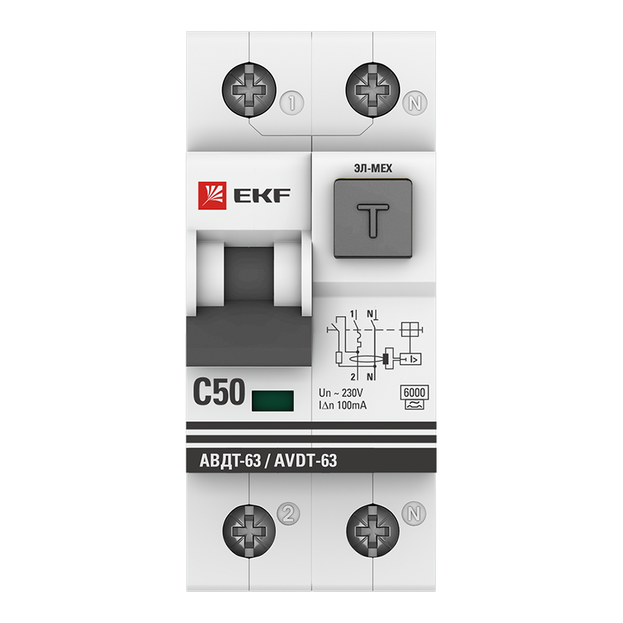 Автоматический выключатель дифференциального тока АВДТ-63 EKF PROxima представляет аппарат, сочетающий функции автоматического выключателя с электромеханическим или электронным УЗО. При обнаружении автоматическим выключателем в защищаемом участке сети тока утечки (повреждения) на землю или сверхтока (тока перегрузки иликороткого замыкания) происходит срабатывание устройства, приводящее к отключению защищаемой сети. Возможна коммутация алюминиевым и медным проводником.Автоматический выключатель дифференциального тока малогабаритный АВДТ-63М EKF PROxima представляет аппарат, сочетающий функции автоматического выключателя с электронным УЗО типа АС в компактном корпусе шириной один модуль. При обнаружении автоматическим выключателем на защищаемом участке сети тока утечки (повреждения) на землю или сверхтока (тока перегрузки или короткого замыкания) происходит срабатывание устройства, приводящее к отключению защищаемой сети. Особое отличие дифференциальных автоматических выключателей EKF с электронным УЗО – в нали