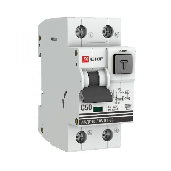 EKF PROxima АВДТ-63 Диф. Автомат (C)   50А /100мА тип А 6кА , электромеханический