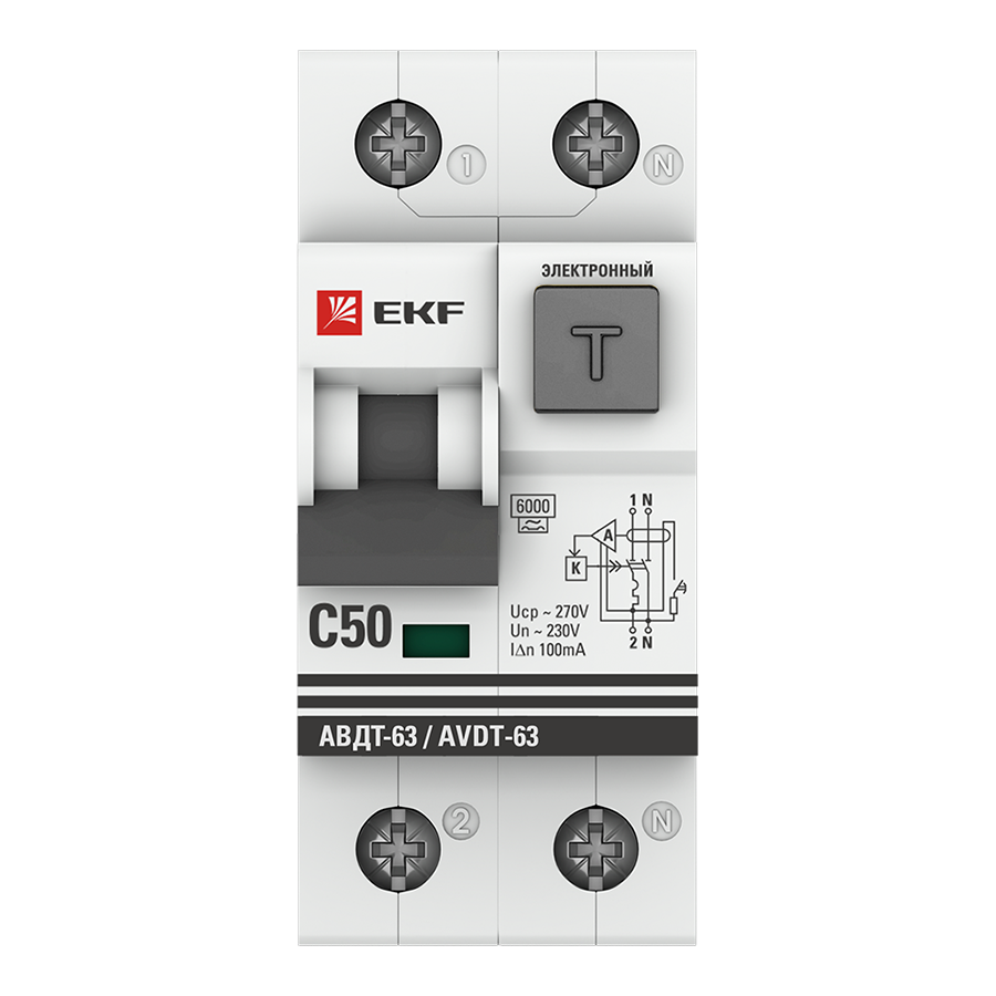 Автоматический выключатель дифференциального тока АВДТ-63 EKF PROxima представляет аппарат, сочетающий функции автоматического выключателя с электромеханическим или электронным УЗО. При обнаружении автоматическим выключателем в защищаемом участке сети тока утечки (повреждения) на землю или сверхтока (тока перегрузки иликороткого замыкания) происходит срабатывание устройства, приводящее к отключению защищаемой сети. Возможна коммутация алюминиевым и медным проводником.Автоматический выключатель дифференциального тока малогабаритный АВДТ-63М EKF PROxima представляет аппарат, сочетающий функции автоматического выключателя с электронным УЗО типа АС в компактном корпусе шириной один модуль. При обнаружении автоматическим выключателем на защищаемом участке сети тока утечки (повреждения) на землю или сверхтока (тока перегрузки или короткого замыкания) происходит срабатывание устройства, приводящее к отключению защищаемой сети. Особое отличие дифференциальных автоматических выключателей EKF с электронным УЗО – в нали