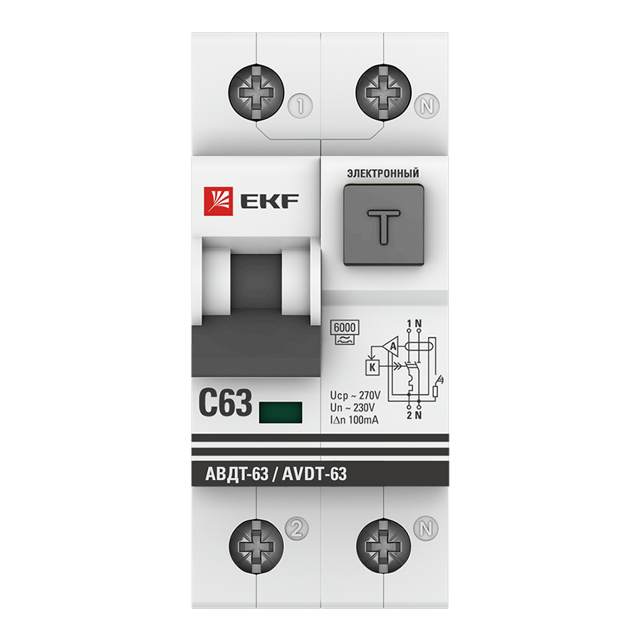 Автоматический выключатель дифференциального тока АВДТ-63 EKF PROxima представляет аппарат, сочетающий функции автоматического выключателя с электромеханическим или электронным УЗО. При обнаружении автоматическим выключателем в защищаемом участке сети тока утечки (повреждения) на землю или сверхтока (тока перегрузки иликороткого замыкания) происходит срабатывание устройства, приводящее к отключению защищаемой сети. Возможна коммутация алюминиевым и медным проводником.Автоматический выключатель дифференциального тока малогабаритный АВДТ-63М EKF PROxima представляет аппарат, сочетающий функции автоматического выключателя с электронным УЗО типа АС в компактном корпусе шириной один модуль. При обнаружении автоматическим выключателем на защищаемом участке сети тока утечки (повреждения) на землю или сверхтока (тока перегрузки или короткого замыкания) происходит срабатывание устройства, приводящее к отключению защищаемой сети. Особое отличие дифференциальных автоматических выключателей EKF с электронным УЗО – в нали
