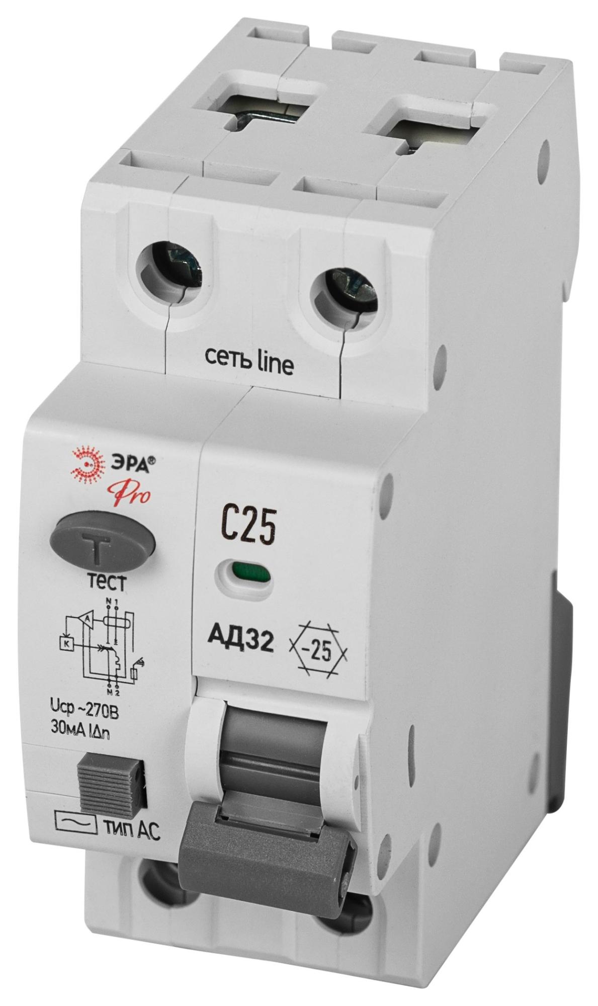 ЭРА АВДТ 4,5кА ЭРА PRO D32E2C25АC30P АД-32 электронное 1P+N C25 30мА тип АC защита 230В