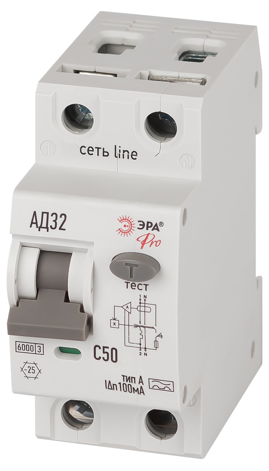 —ЭРА АВДТ 6кА PRO D326E2C50A100 АД-32 электронное 1P+N C50 100мА тип A, арт Б0059203