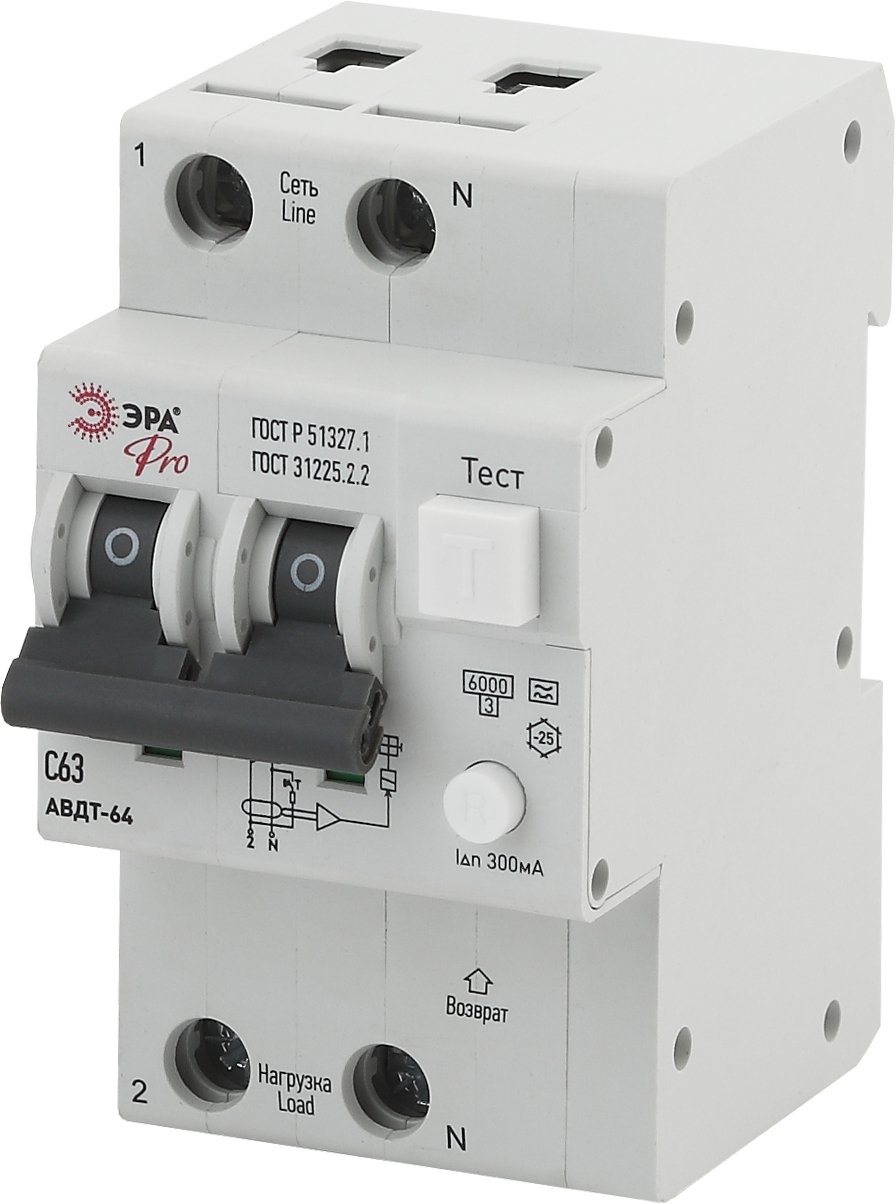 ЭРА Pro Автоматический выключатель дифференциального тока NO-902-20 АВДТ 64 C63 300мА 1P+N тип A