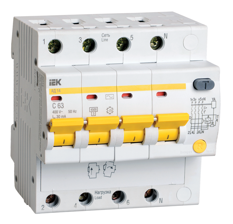 IEK KARAT Дифференциальный автоматический выключатель АД14 4Р 6А 10мА