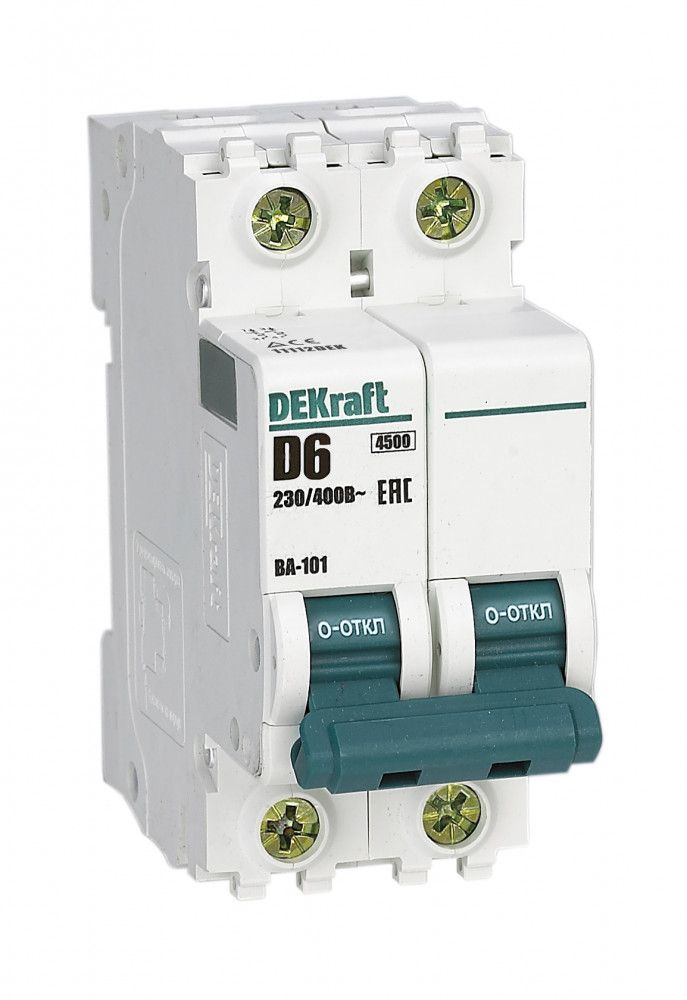 Автоматический выключатель серии ВА-101 Dekraft; 2P; номинальный ток 6 А; характеристика D; отключающая способность 4,5 кА. 5 монолитных заклепок повышают прочность корпуса аппарата. Сплошная лицевая панель обеспечивает безопасность эксплуатации аппарата. Боковые каналы охлаждения повышают стабильность работы при высоких температурах окружающей среды. Есть возможность установки дополнительных аксессуаров с левой стороны устройства. Аппарат на 100% совместим с корпусами Dekraft и Systeme Electric.