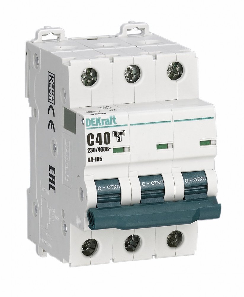 Автоматический выключатель серии ВА-105 Dekraft; 3P; ном. ток 6 А; характеристика В; откл. способность 10 кА; ширина модуля 18мм. Аппараты имеют механизм мгновенной коммутации, 6 монолитных заклепок, которые повышают прочность корпуса. Боковые каналы охлаждения повышают стабильность работы при высоких температурах окружающей среды. Есть возможность установки дополнительных аксессуаров с левой стороны устройства. Аппарат на 100% совместим с корпусами и оболочками Dekraft и Systeme Electric.