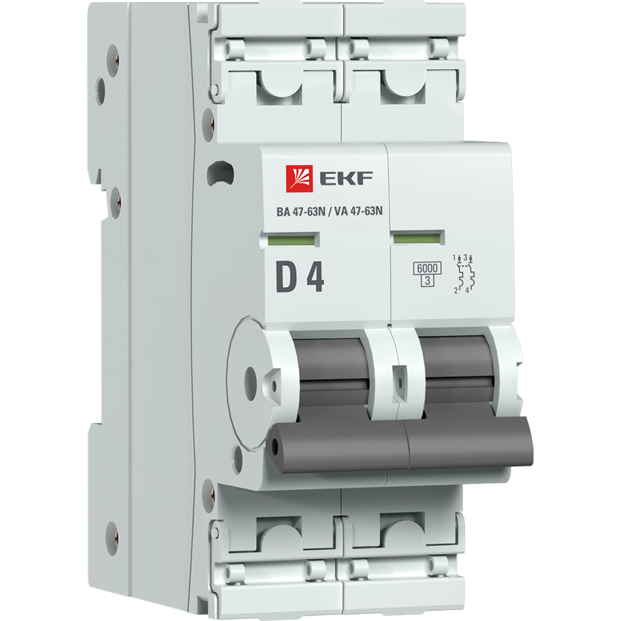 —EKF Автоматический выключатель 2P 4А (D) 6кА ВА 47-63N PROxima, арт M636204D