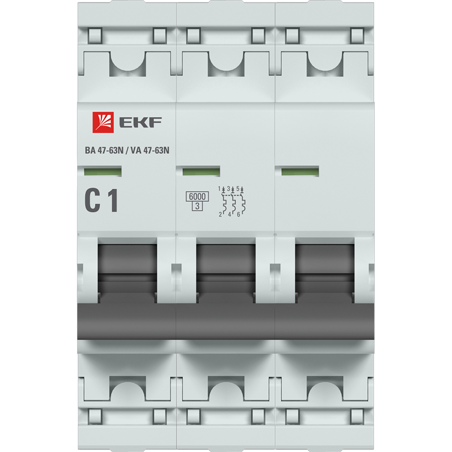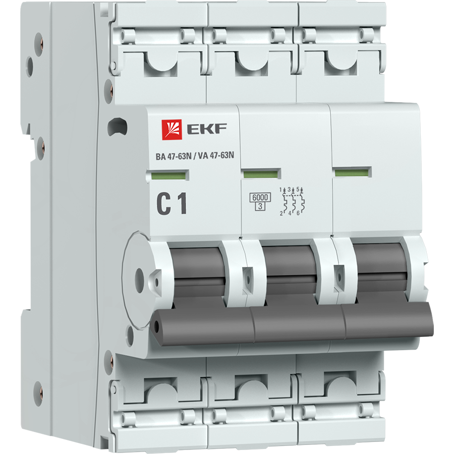 Автоматические выключатели ВА 47-63N 6 кА EKF PROxima являются обновлённой платформой успешно зарекомендовавших себя на рынке линейки автоматических выключателей ВА 47-63 6 кА EKF PROxima. Автоматические выключатели являются механическими коммутационными аппаратами и соответствуют ГОСТ IEC 60898-1. Особенностью данной серии является усовершенствованная конструкция. В выключателях имеются пластиковые крышки, закрывающие доступ к винтовым зажимам и служащие для опломбирования выключателей, что исключает несанкционированный доступ к проводникам. Корпус выключателей усилен дополнительными заклепками для обеспечения его максимальной жесткости. Выключатели оборудованы удобной рукояткой управления, обеспечивающей надежное оперирование аппаратами. На лицевой панели автоматических выключателей имеется цветовой индикатор реального состояния контактов. Конструкция двухпозиционного зажима обеспечивает удобный монтаж выключателя на DIN-рейку.