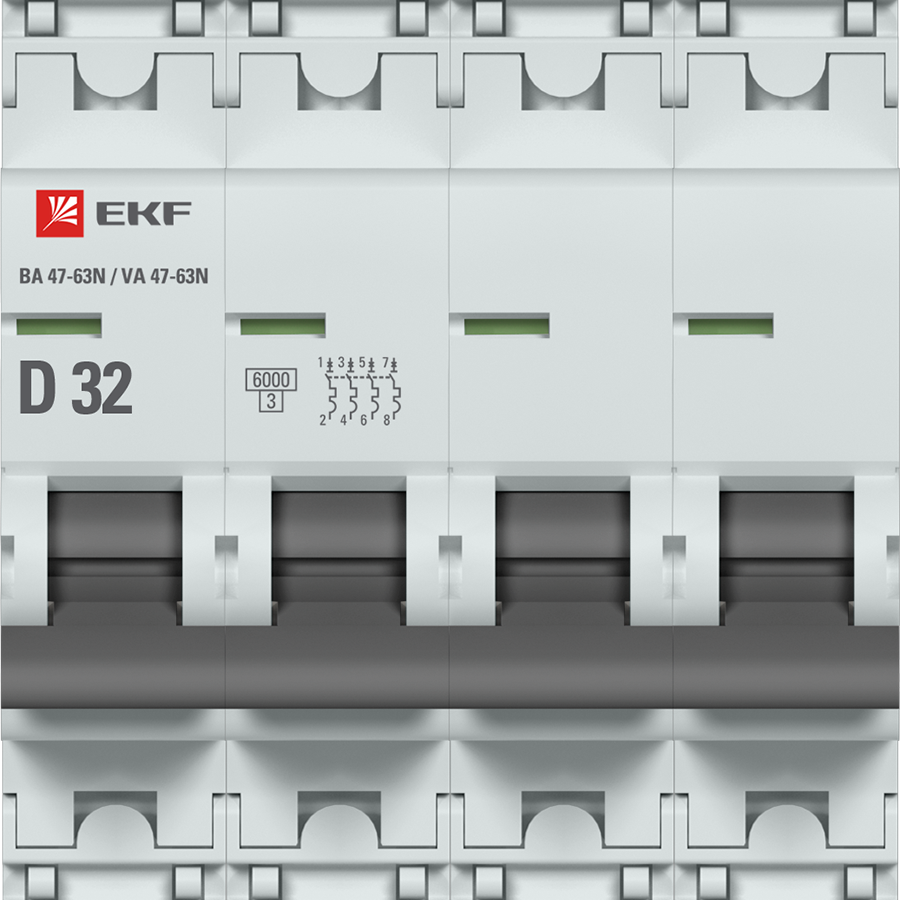 —EKF Автоматический выключатель 4P 32А (D) 6кА ВА 47-63N PROxima, арт M636432D