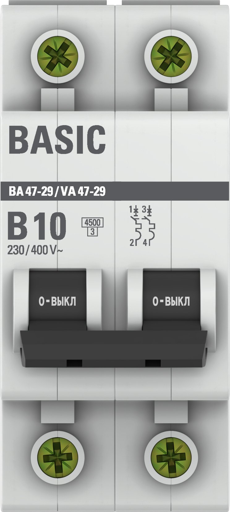 EKF Basic ВА 47-29 Автоматический выключатель  (B) 2P  10А 4,5кА
