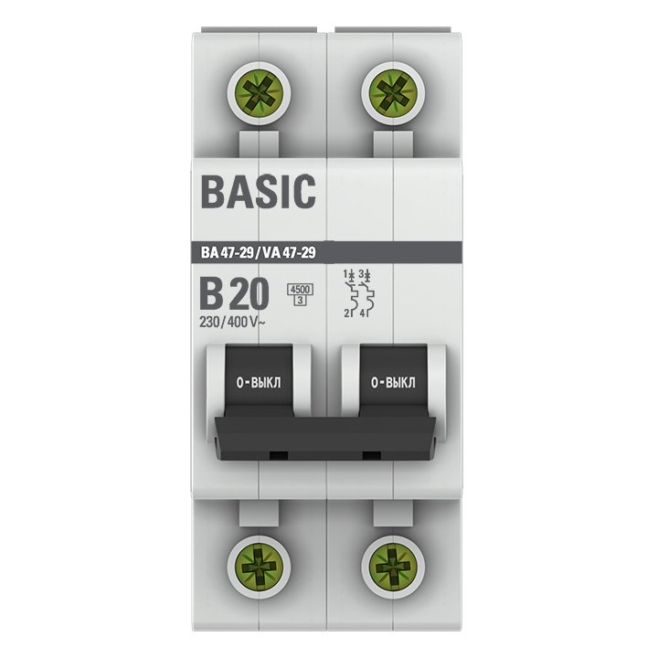 —EKF Basic ВА 47-29 Автоматический выключатель (B) 2P 20А 4,5кА, арт mcb4729-2-20-B
