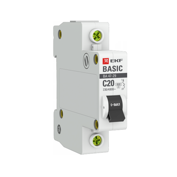 —EKF Basic ВА 47-29 Автоматический выключатель (С) 1P 20А 4,5кА, арт mcb4729-1-20C