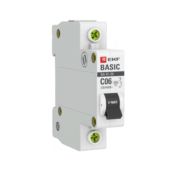 —EKF Basic ВА 47-29 Автоматический выключатель (С) 1P 6А 4,5кА, арт mcb4729-1-06C